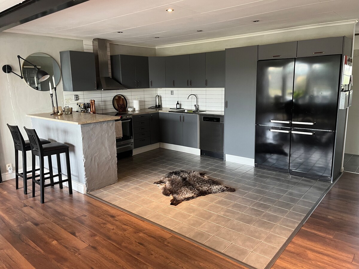 Rumah yang baru dibangun (2022) di dekat laut dan matahari terbenam yang ajaib di atas Kepulauan Karls dengan semua modernitas Lokasi tunggal, 200 m ke laut, 900 m ke kamp memancing dan pantai Djupvik. Rumah satu lantai yang disesuaikan untuk lansia, total 130 meter persegi, 4 kamar tidur, 8 tempat tidur, 2 toilet/kamar mandi, area sauna. Dilengkapi dengan Mesin Pencuci Piring, Mesin Cuci, AC, dan WiFi dengan koneksi serat 500/500 Mbit/s Teras besar dengan perabotan luar ruangan, hammock dan pemanggang gas