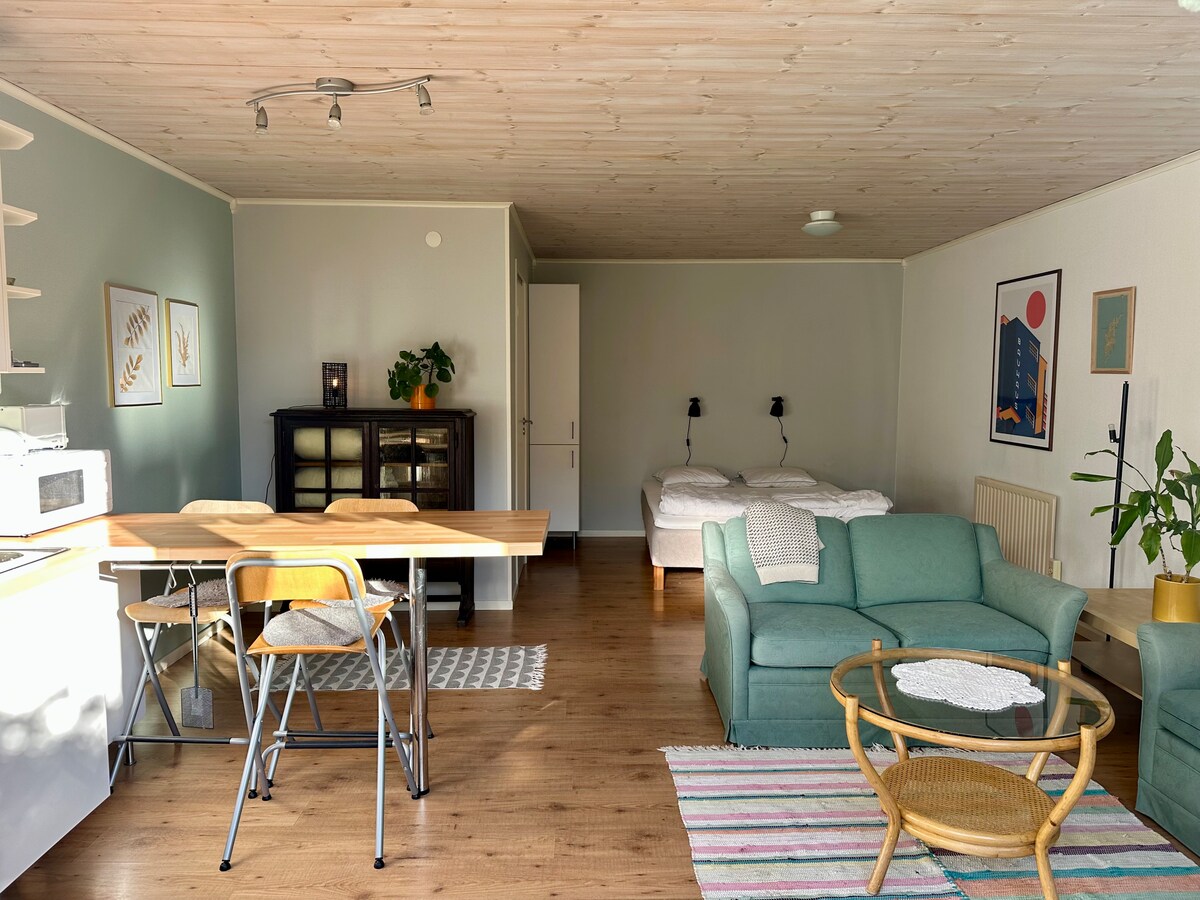 Selamat datang di kabin kayu menawan kami yang terletak di lingkungan Kintegården yang damai. 'Bulhus' yang lapang menyediakan akomodasi santai dan pribadi di lokasi yang luar biasa untuk menjelajahi pulau Gotland yang indah. Kabin ini dihias dengan cita rasa tinggi dan memiliki fitur: Ruang duduk yang terang dan lapang Dapur fungsional Kamar mandi/toilet yang luas Kamar tidur yang nyaman dengan satu tempat tidur ganda, ideal untuk dua tamu