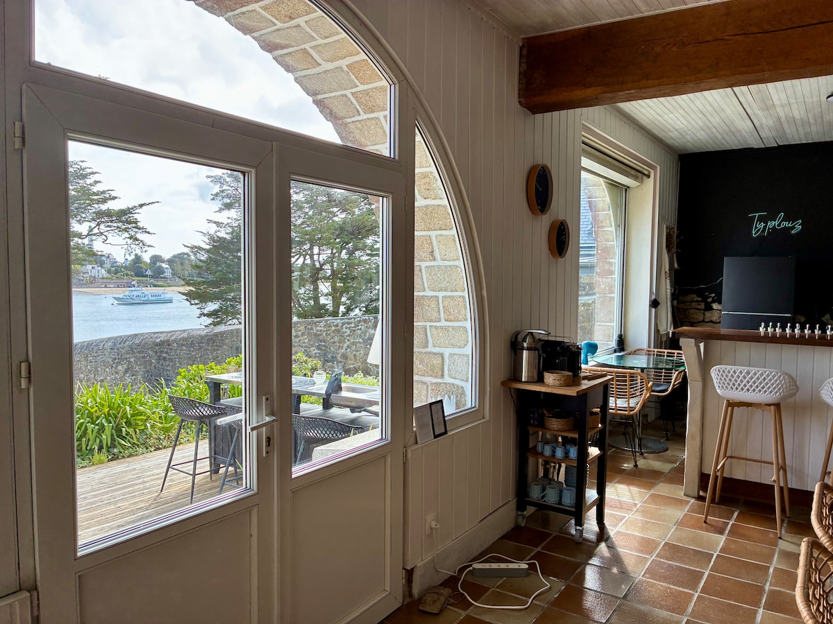 Je propose à la location sur quelques périodes, grâce à ma super co hôte Tetyana qui organisera votre accueil. Ma maison (historique et de famille !) à Ste-Marine : Ty Plouz, surnommée Le Paradis par les amis, en 1ère ligne et bénéficiant d’une magnifique vue mer et accès direct à l’estuaire. Attention draps et serviettes ne sont pas fournis par défaut, mais sur simple message Tetyana peut s'en charger (tarif 25 euros le grand lit, 15 euros le petit lit, avec serviette de toilette).