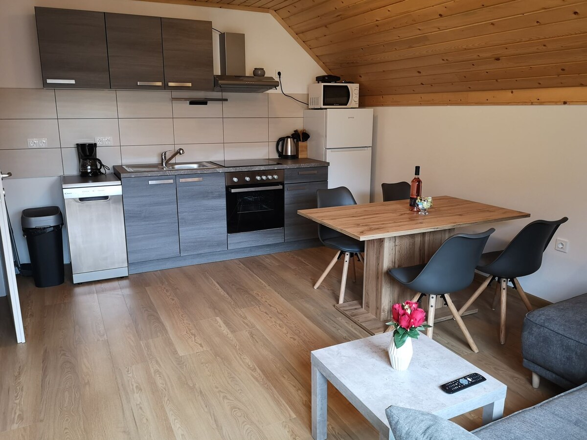 Baru, berlokasi sempurna, tepat di bawah lereng SKI (50 m); apartemen mewah modern dan berperabot lengkap. Kurang dari 3 menit ke bagian yang paling menawan di kota tua Kranjska Gora dan Parkir aman gratis di garasi di bawah apartemen. Check - in mandiri. Pagi yang cerah dan pemandangan indah dan menakjubkan ke pegunungan akan menjamin Anda liburan yang indah atau hanya istirahat singkat yang manis. Semua musim pengalaman yang tak terlupakan akan segera membawa Anda kembali:)