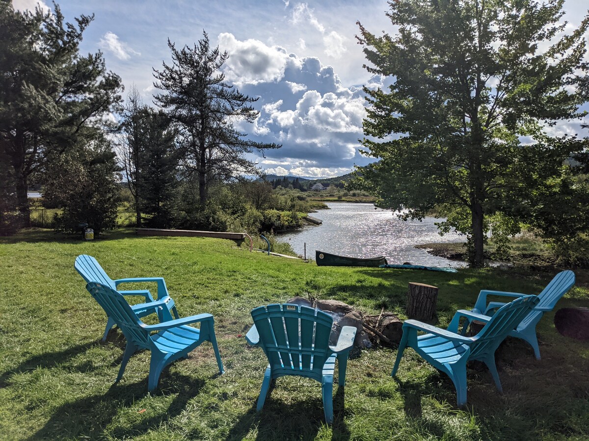 Looking for a break, try our lovely 2-level 1,000 square foot cottage. Wood burning stove bring your own firewood, etc. 4KM to Mont Tremblant National Park. Need to work, high speed internet and fast MESH Wi-Fi. Shared hot tub between 2 cottages. The dock with access to the kayaks, canoe, paddleboat, etc. is shared with our main house and our family. NO BBQ in winter. There is plenty of room for all but we just want to be clear it is shared. CITQ # 298403
