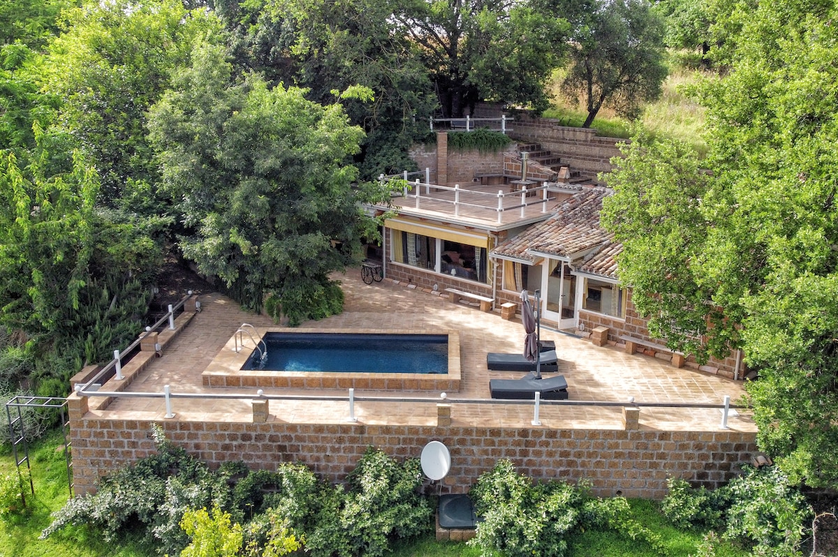 Villa butik tenggelam dalam hutan di dalam Parco dei Cimini di lereng Monte Cimino (800 m. a.s.l.) Properti ini luasnya sekitar 450 meter persegi dan dikelilingi oleh sekitar 1,5 hektar hutan taman/pinus. Villa ini memiliki sauna dan tabung panas kayu bakar pribadi di hutan. Rumah yang dirancang oleh salah satu arsitek terbaik di Italia tengah dan dilengkapi perabotan ahli.