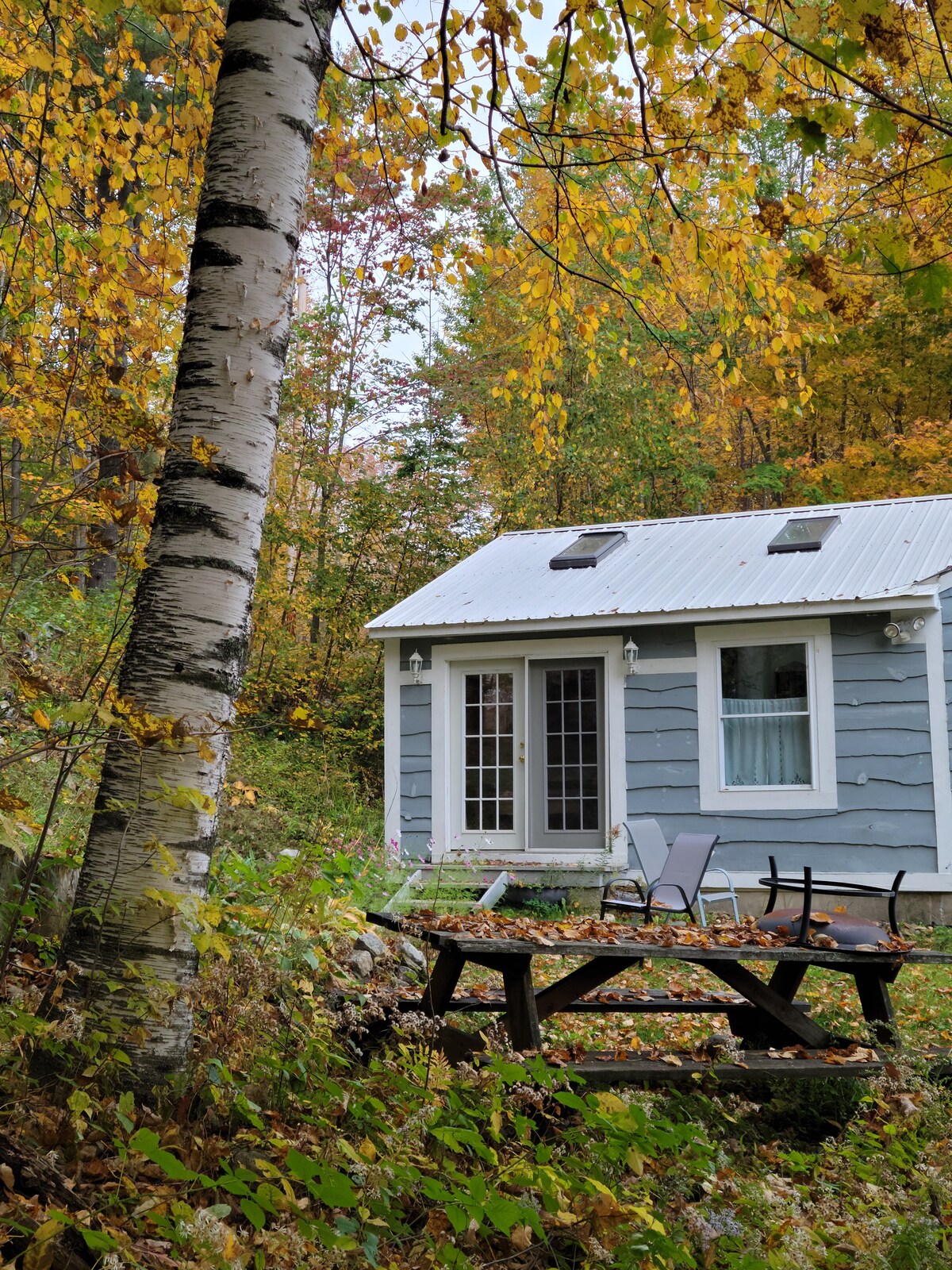 Cozy cabin nestled in the secluded woods along a rushing brook just outside Grafton village. You'll find it in the heart of southern Vermont's ski and hiking country just a short drive to Green Mountain NP. Designed to wrap your soul in flannel sheets, this tiny home has all the charm to allow you to live out your cabin-life fantasies hassle free. Perfect for lovers, bromances, gal pals, cuddle buddies, close friends, and just about any one else who wants to unwind, get close and personal.