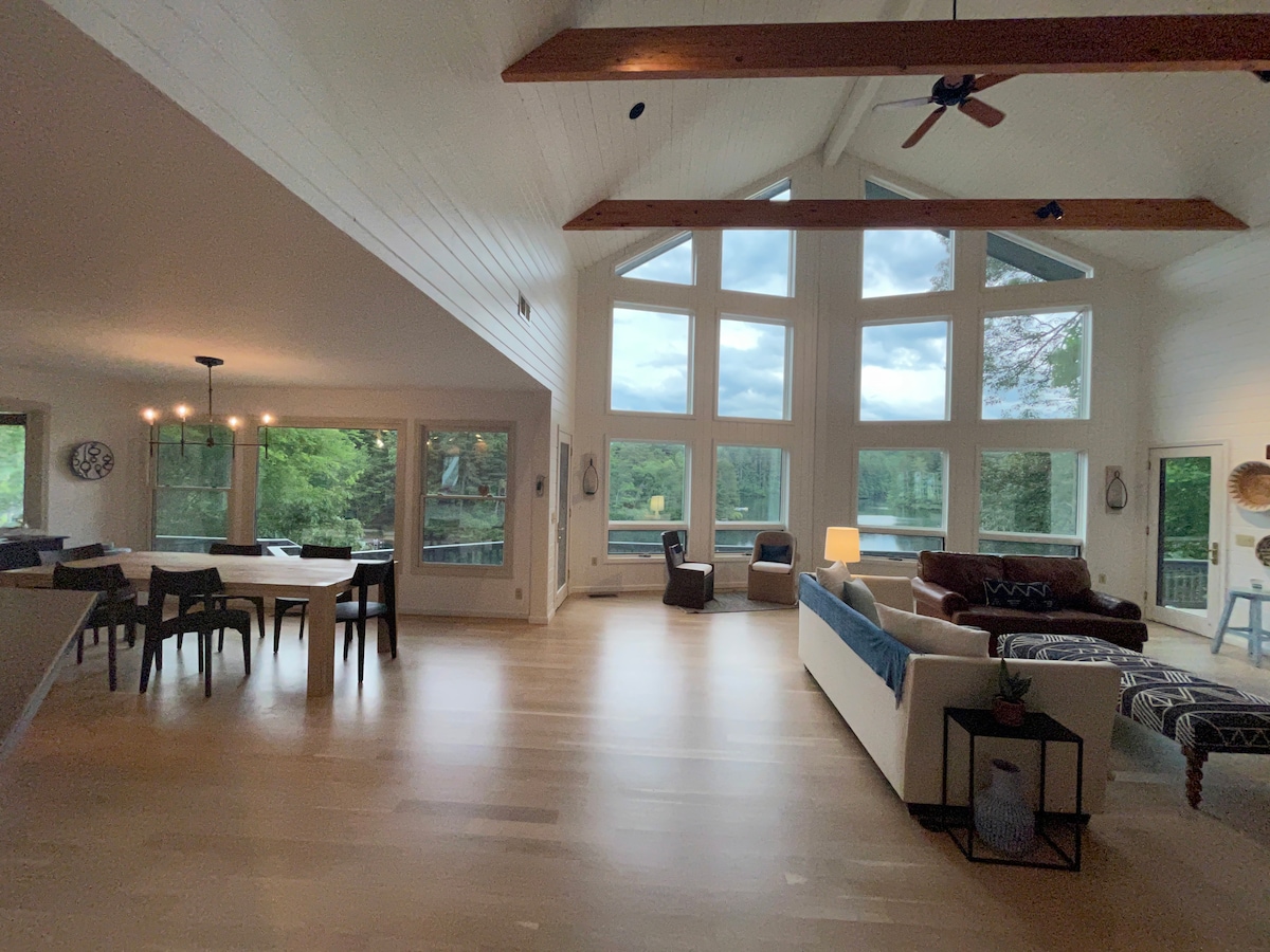 Selamat datang di suaka! Rumah 3,5 BR, 4BA tepi danau yang luas dan cerah dengan kamar besar berkubah besar yang menghadap ke danau menawarkan ketenangan, privasi, pemandangan danau yang luas dari setiap kamar di rumah. Lokasi yang sangat damai di teluk renang yang indah dan pribadi. Bermil - mil garis pantai yang dilindungi di danau ini = bermil - mil ketenangan! SEWA MUSIM PANAS = minimum 5 malam.