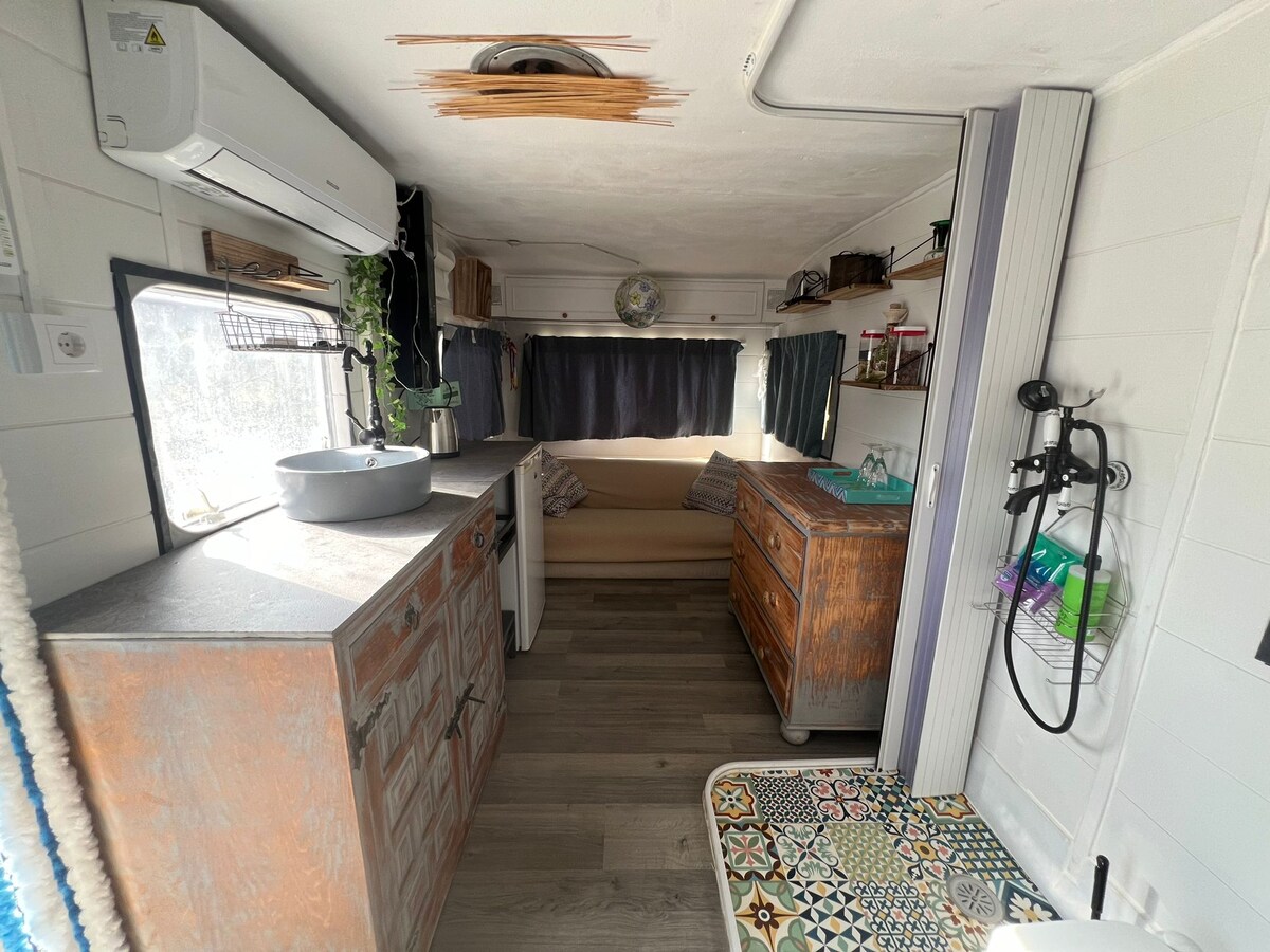 Tetaplah pada diri Anda sendiri – telanjang atau tidak – atau nikmati kebersamaan dengan 2 tuan rumah yang sangat ramah, 2 remaja & sekelompok anjing yang sangat manusiawi: di karavan di taman rumah kami di pedesaan Almayate di 2,5km dari satu - satunya pantai Costa del Sol yang belum terjamah, setengah jam berkendara dari Málaga: Dapatkan yang terbaik dari 2 dunia: berkemah + akses bersama ke semua komoditas termasuk kolam renang, teras besar yang menghadap ke laut, dapur luar dengan bbq, tempat makan tertutup & meja biliar di lahan seluas 5.000m ² yang penuh dengan buah - buahan.