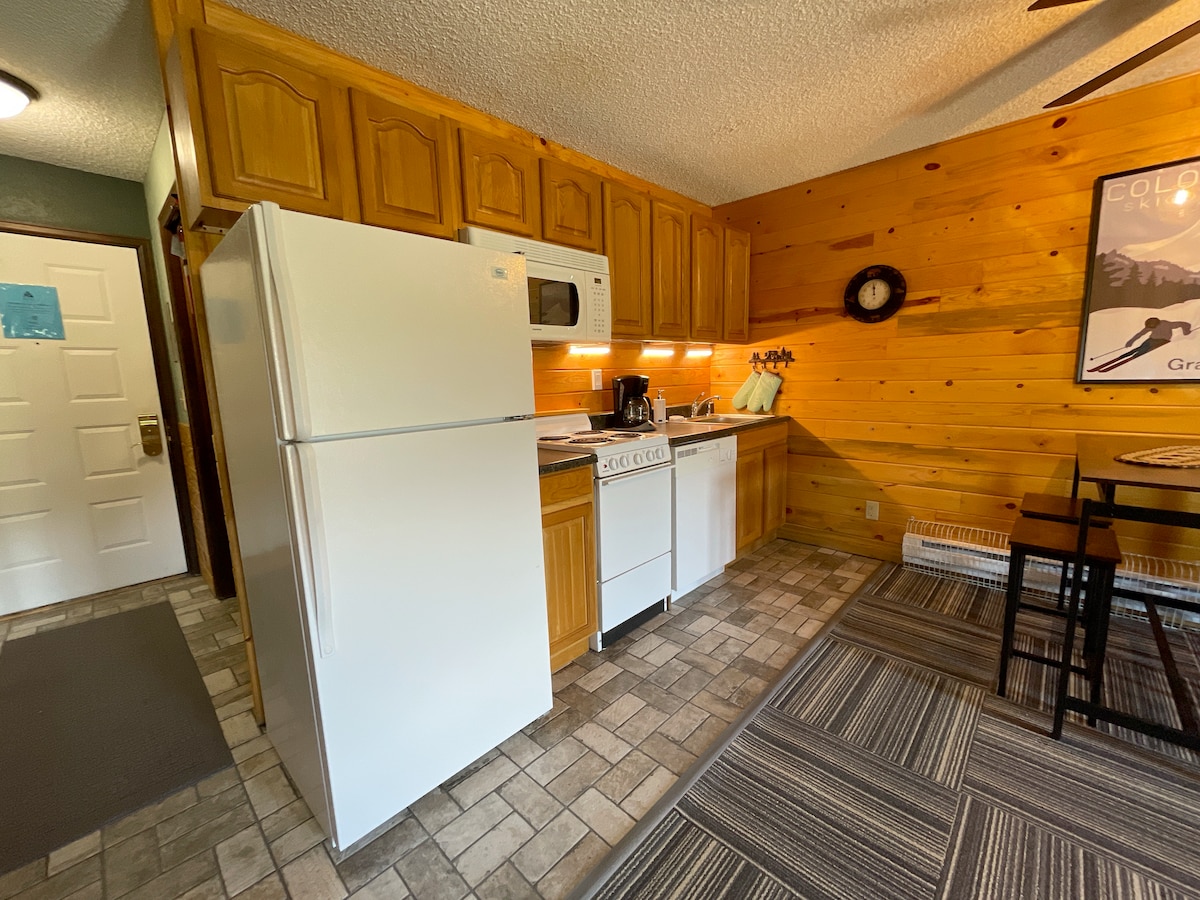 Liburan yang sempurna! Baru direnovasi dengan finishing kelas atas dan dirawat dengan teliti, kondominium nyaman ini menanti untuk menjadi rumah Anda saat jauh dari rumah! Studio yang nyaman menampung hingga 4 orang dengan tempat tidur king yang nyaman dan sofa tidur lengkap dengan kasur memory foam untuk kenyamanan maksimal. Fasilitas resor termasuk restoran, ruang permainan, stasiun kerja, salon, penyewaan ski, berenang, sauna, bak mandi air panas, tenis, raket, dan antar jemput ski. Taman Nasional Rocky Mountain, Grand Lake dan Taman Musim Dingin.
