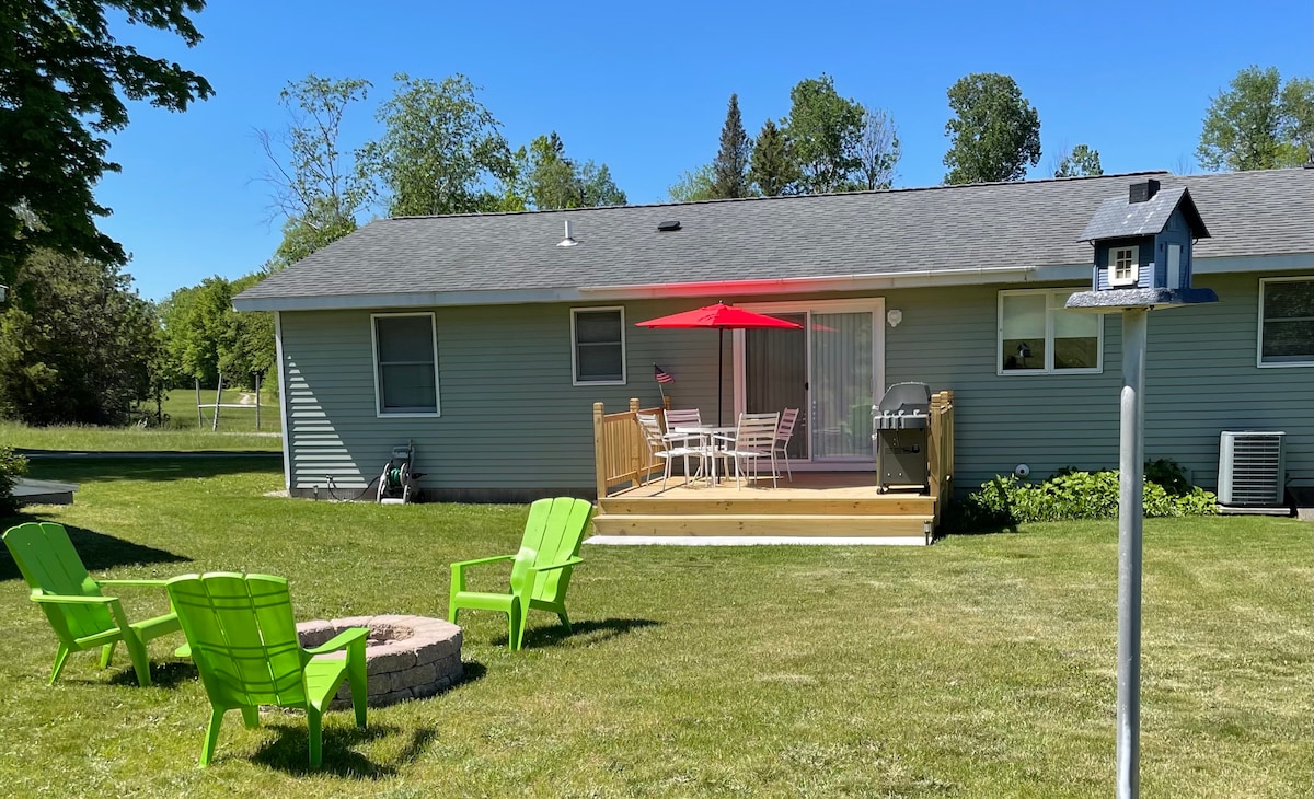 Rumah 3 bd/2 kamar mandi lengkap kami terletak di lingkungan yang tenang di dasar Leelanau County. Kami berjarak beberapa menit dari Traverse City, kilang anggur, kilang bir, beberapa pantai - termasuk Sand Dunes, Leland Fishtown, Empire, Suttons Bay, dan banyak jalur pendakian dan bersepeda. Setelah menikmati pemandangan Michigan Utara, kembalilah untuk beristirahat dan segarkan diri dalam privasi rumah Anda sendiri. Minum di dekat api unggun di halaman belakang, memanggang makanan, tidur larut malam, dan memandangi bintang. Ciptakan Kenangan Di Sini.