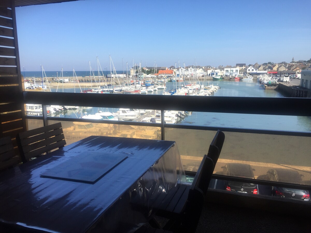MINIMUM 5 MALAM DI MUSIM PANAS DAN LIBURAN SINGKAT/3 MALAM GrandWE/AUTRES minimum 2 malam Dapat menampung 5/3 tempat tidur Apartemen 60 m2 di tepi laut, pelabuhan dan pemandangan laut, lantai 2, tempat parkir, lift. 1 kamar tidur dengan balkon/1 kamar tidur dengan balkon area makan di pelabuhan, dapur lengkap. douche.Wifi/commerces dan pantai di place.Draps/serviettes disediakan Layanan kebersihan belum termasuk Pelabuhan memancing bisa menghasilkan kebisingan di malam hari tergantung pasang surut, itulah kehidupan pelabuhan! Dekat pantai D-Day, Pointe du Hoc, Omaha