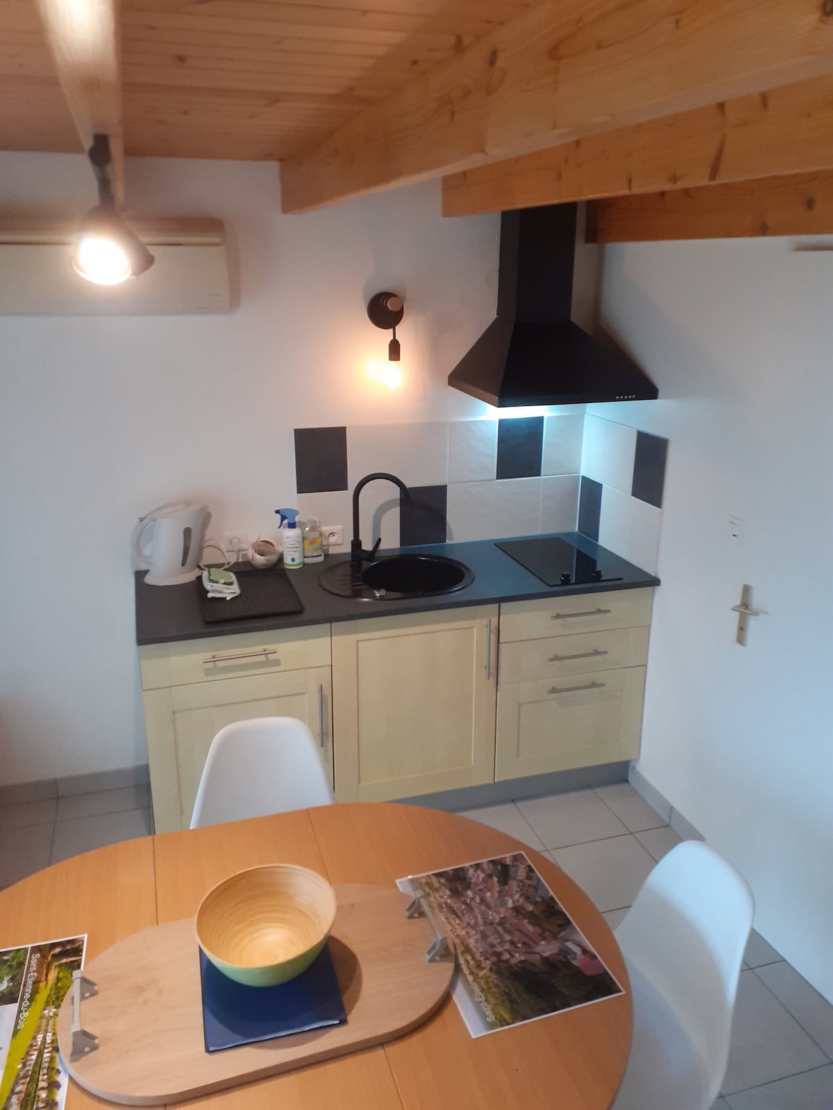 Studio seluas 30m² 30 menit dari laut. Dapur dilengkapi peralatan lengkap (oven, microwave, mesin cuci piring, mesin cuci...). Kamar tidur memiliki tempat tidur double bed dan click - clack di ruang tamu memungkinkan untuk mengakomodasi 2 orang tambahan dengan nyaman. Kamar mandi dan toilet baru - baru ini dipisahkan. Seprai dan handuk disediakan. Eksterior pribadi sepenuhnya tertutup, BBQ dan furnitur taman tersedia untuk hari - hari yang cerah.
