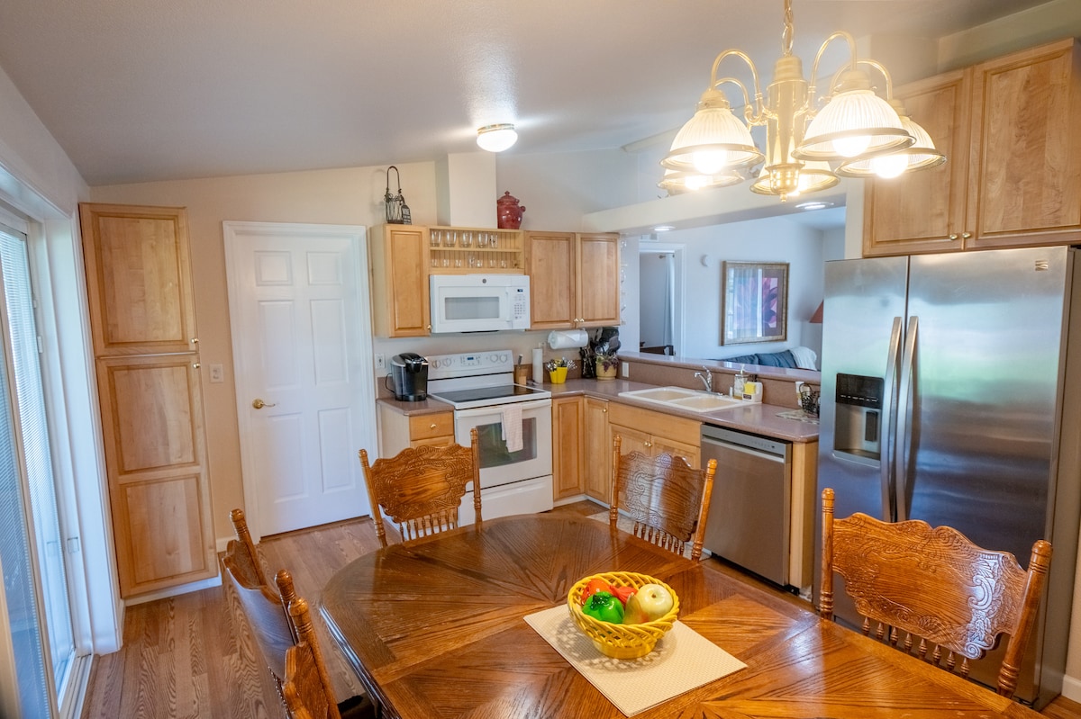 Nikmati pengalaman bergaya di tempat peristirahatan yang berlokasi di pusat kota ini! Dalam jarak 3 mil dari pusat perbelanjaan, pusat perbelanjaan, ruang makan, dan kilang anggur papan atas. Bersantai di pancuran mewah dan luas, bersantai di tempat tidur berukuran king yang nyaman, atau menjadi produktif di stasiun kerja Anda sendiri. CATATAN: ini adalah apartemen walk - out ruang bawah tanah di bawah ruang tamu keluarga kami. Meskipun kami telah berusaha keras untuk menghilangkan transfer suara, Anda mungkin masih mendengar langkah kaki sesekali di atas (terutama pukul 7 -9 pagi dan 5 -7 sore).