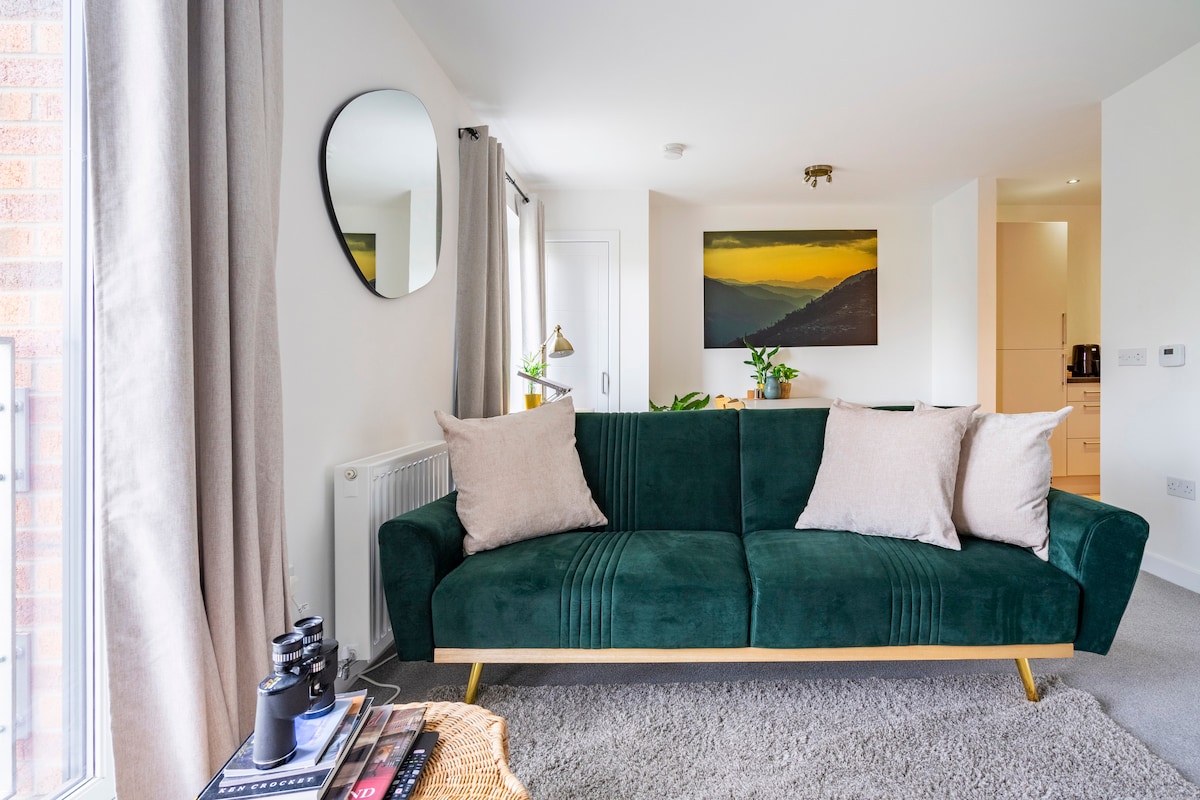 Flat modern ini, selesai pada tahun 2023, berlokasi strategis di dekat Edinburgh City Centre (10 menit) dan bandara (20 menit). Di apartemen yang cerah dan lapang ini, Anda akan menemukan: - Tanaman sungguhan! - 1 tempat tidur king & 1 sofa bed king - Kasur Emma yang sangat nyaman, seprai dengan jumlah benang yang tinggi & handuk lembut - Mesin kopi Nespresso - Mesin cuci/pengering/mesin cuci piring - Hairdryer - Smart TV 65" dan permainan papan - Pantry dengan nasi, pasta, ramen, granola, susu biasa & oat - 15 menit berjalan kaki dari pantai