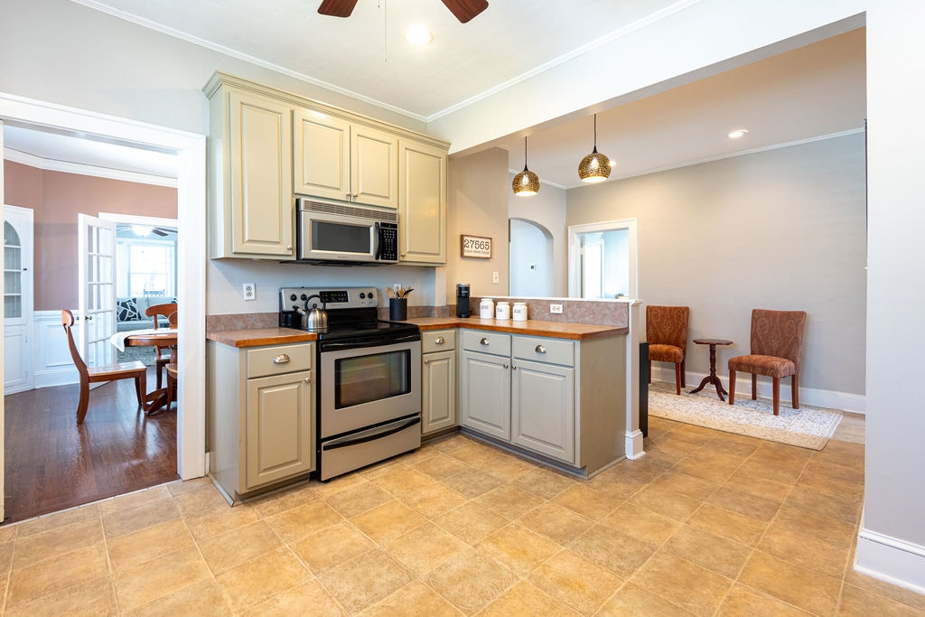 Enjoy your time at The Gingerbread House! This home, built in the early 1900s, has been completely remodeled and updated without sacrificing any of its charm. The 3 bedroom, 2 bath home is centrally located in downtown Youngsville. The Kitchen, Living room and Bedrooms are large plus there is also a Sitting room, Dining room, Pantry and Mud room. Outside you will find a large landscaped yard, including a small pond and fire pit. There is plenty of parking and turning around is a breeze.
