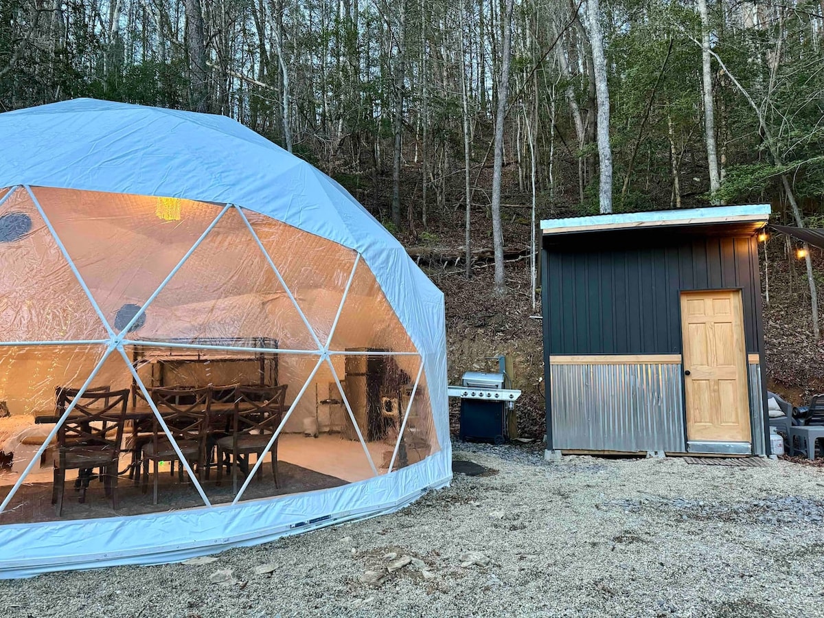 Mencari Liburan Pasangan yang Sempurna dan Unik? Mount LeConte adalah perpaduan kenyamanan modern dan ketenangan luar ruangan yang sangat Anda butuhkan. ✦✦Fitur Kubah Utama✦✦ ✦ Mini -pit HVAC (AC & Pemanas) Kamar mandi DALAM RUANGAN✦ lengkap! ✦ Tempat api luar ruangan di tepi sungai! ✦ WiFi! - Tetap Terhubung ✦ Bak Mandi Air Panas! ✦ Tempat tidur berukuran king + Tempat tidur sofa ukuran penuh ✦ Dapur Kecil! Area Duduk✦ Luar Ruangan! Suara Sungai yang ✦Santai! ✦10 mil ke Gatlinburg! ✦ 5 menit menuju pintu masuk Greenbrier GSMNP! ✦ Mudah on/off ke HWY 321 (No Scary Mtn Roads)