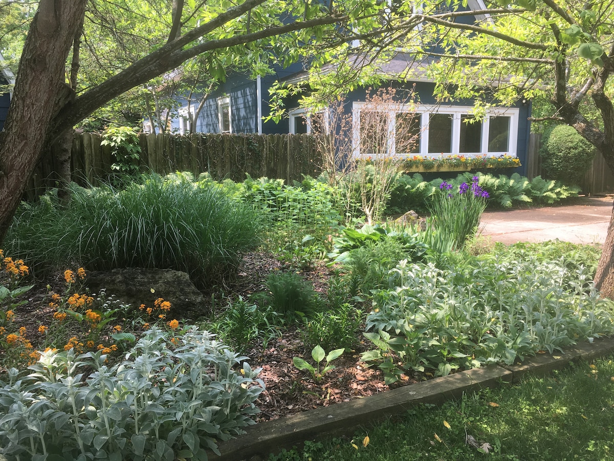 Bungalo yang baru direnovasi dan berdedikasi dengan sentuhan zen modern. Dekat pusat kota Yellow Springs. Unit depan dupleks yang tenang dan nyaman dengan halaman yang bagus, pepohonan, dan parkir tertutup. Kamar mandi memiliki lantai ubin keramik berpemanas. Seluruh unitnya didekorasi dengan furnitur baru, seni, dan smart TV 50 inci baru. Masuki desain seperti zen yang damai, ambil napas dalam - dalam, dan jadikan ini rumah Anda saat jauh dari rumah. Kami juga menyewakan properti di sebelahnya "Sepeda yang dibangun untuk 2 orang ", jika Anda memiliki 5 -7 orang Anda bisa memesan keduanya.