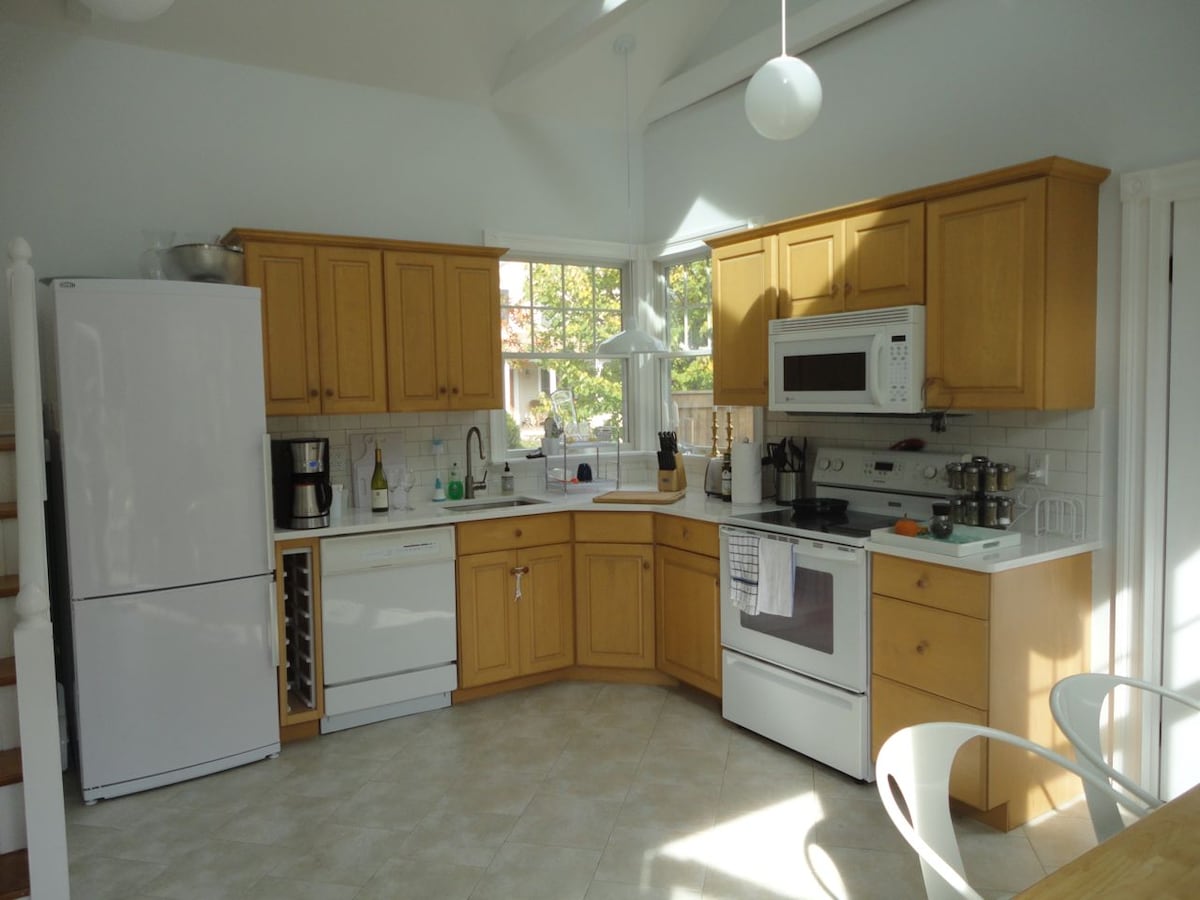 Bungalo pribadi dengan pintu masuk terpisah di rumah tudor bersejarah. Kamar tidur yang luas dengan tempat tidur king size, dapur kecil dan kamar mandi. Dua sepeda, TV kabel, internet, AC, handuk pantai, parkir, camilan, kopi, dan air semua disediakan. Jarak ke pantai, restoran, toko, kebun anggur, toko kelontong, peternakan, dan pasar ikan dapat ditempuh dengan berjalan kaki ke pantai, restoran, toko anggur Halte Jitney berjarak satu blok!