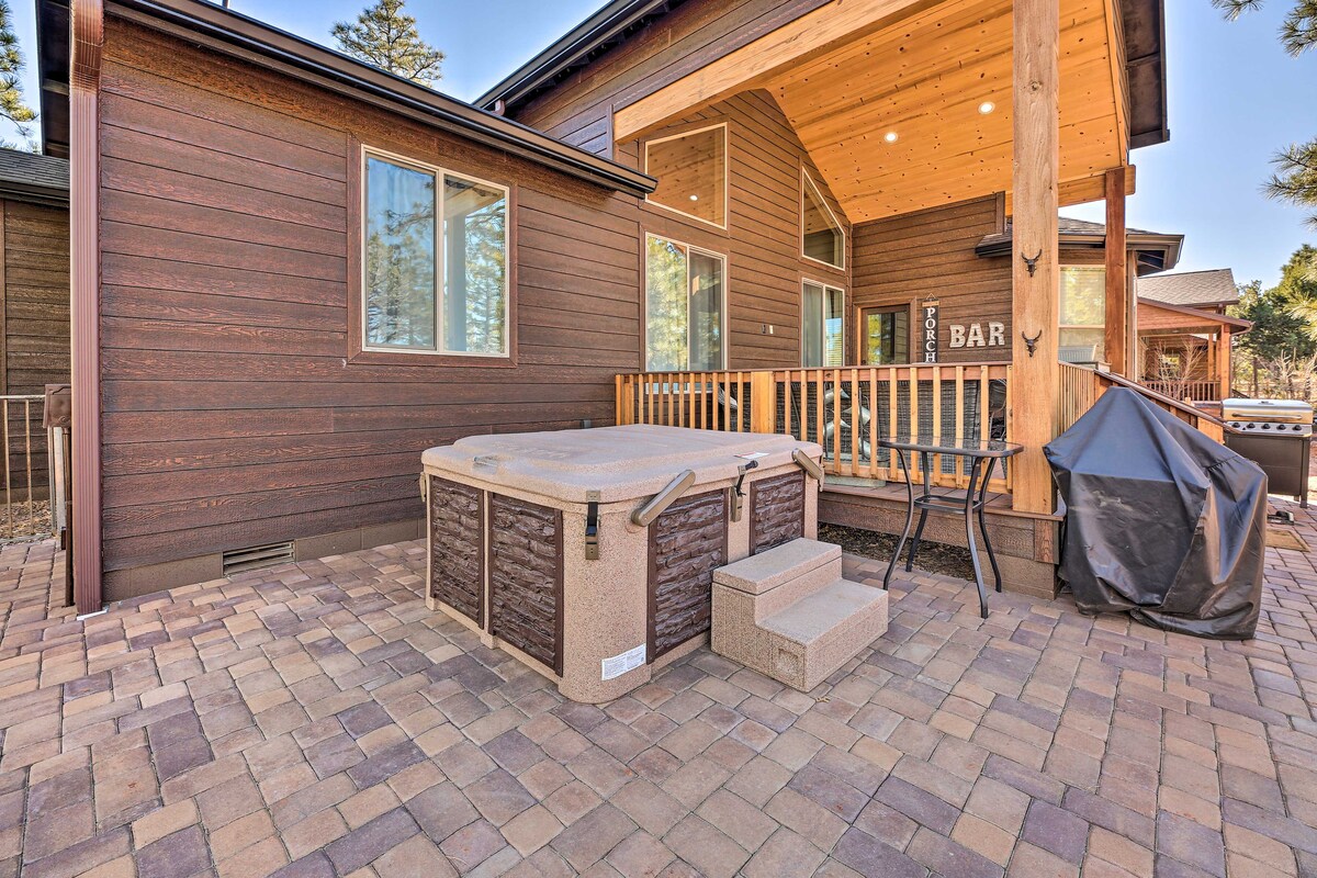 Nyaman seperti pelukan beruang! Temukan tempat peristirahatan pegunungan terbaik. Terletak di tengah - tengah pepohonan pinus yang menjulang tinggi, kabin ini memiliki segalanya yang Anda butuhkan. Setelah seharian menjelajah ke dek tertutup yang luas, di mana Anda bisa barbekyu, bersantai, atau menikmati kompetisi ramah, bermain permainan di luar ruangan. Bersantai di tempat tidur gantung, duduk di dekat meja api atau buat s'mores di dekat lubang api. Di dalam kabin, rasakan kehangatan yang berasal dari perapian gas, menciptakan suasana yang menarik untuk pertemuan yang nyaman & kenangan berharga.