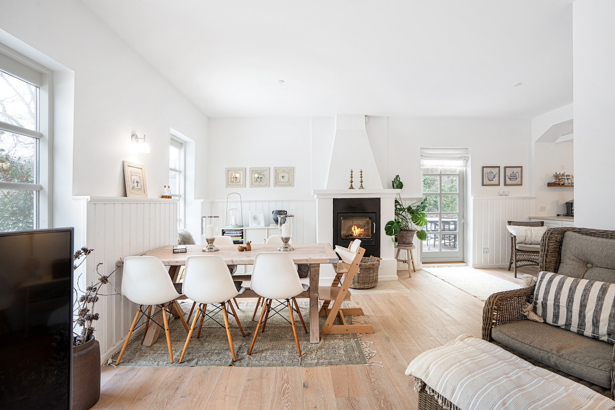 Mutiara alam ini terletak di utara Helsinge di Kongernes Nordsjælland dengan pemandangan lapangan terbuka dan hutan. Jaraknya 200 m ke hutan di mana ada peluang bagus untuk berburu jamur atau hanya berjalan-jalan di alam yang indah. Sangat umum untuk hewan hutan berjalan tepat di luar jendela. Misalnya, rusa, rusa betina dan rusa jantan. Anda dapat mengisi daya mobil listrik Anda di tempat kami. Kami memiliki meter listrik terpisah, sehingga biaya ditagihkan sesuai dengan harga harian yang ditemukan di tempat pengisian daya umum lainnya.