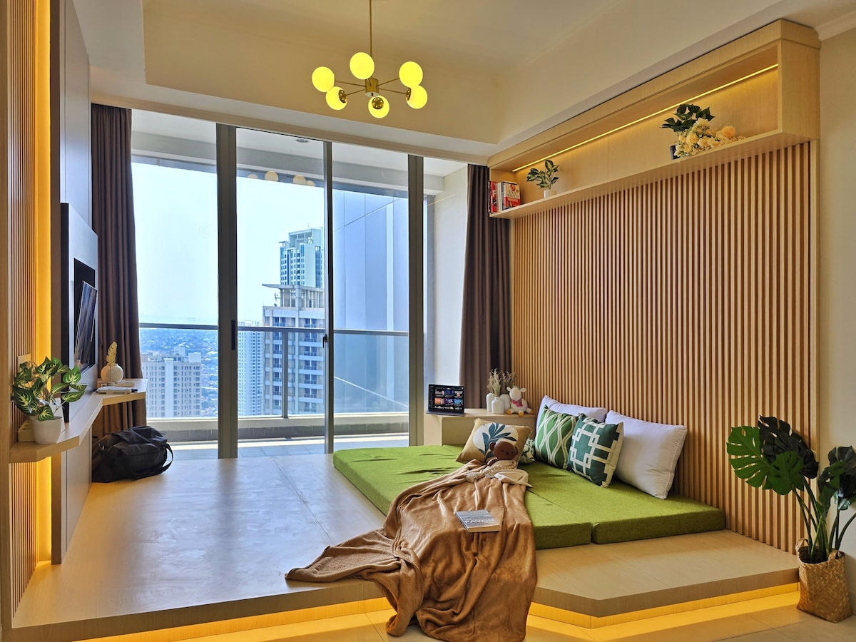 Selamat datang di Daydream - liburan pulau pribadi di atas Jakarta. Terletak di lantai tinggi dengan pemandangan matahari terbenam yang menakjubkan, apartemen yang baru direnovasi ini (Nov 2025) memadukan nuansa pulau modern dengan kenyamanan dan desain yang apik. Dengan akses langsung ke Central Park Mall di pusat kota Jakarta Barat, Anda hanya beberapa langkah dari tempat makan, berbelanja, dan hiburan, namun terasa seperti staycation di pulau. Tempat damai untuk bersantai, melepas penat, dan melamun di atas kota.