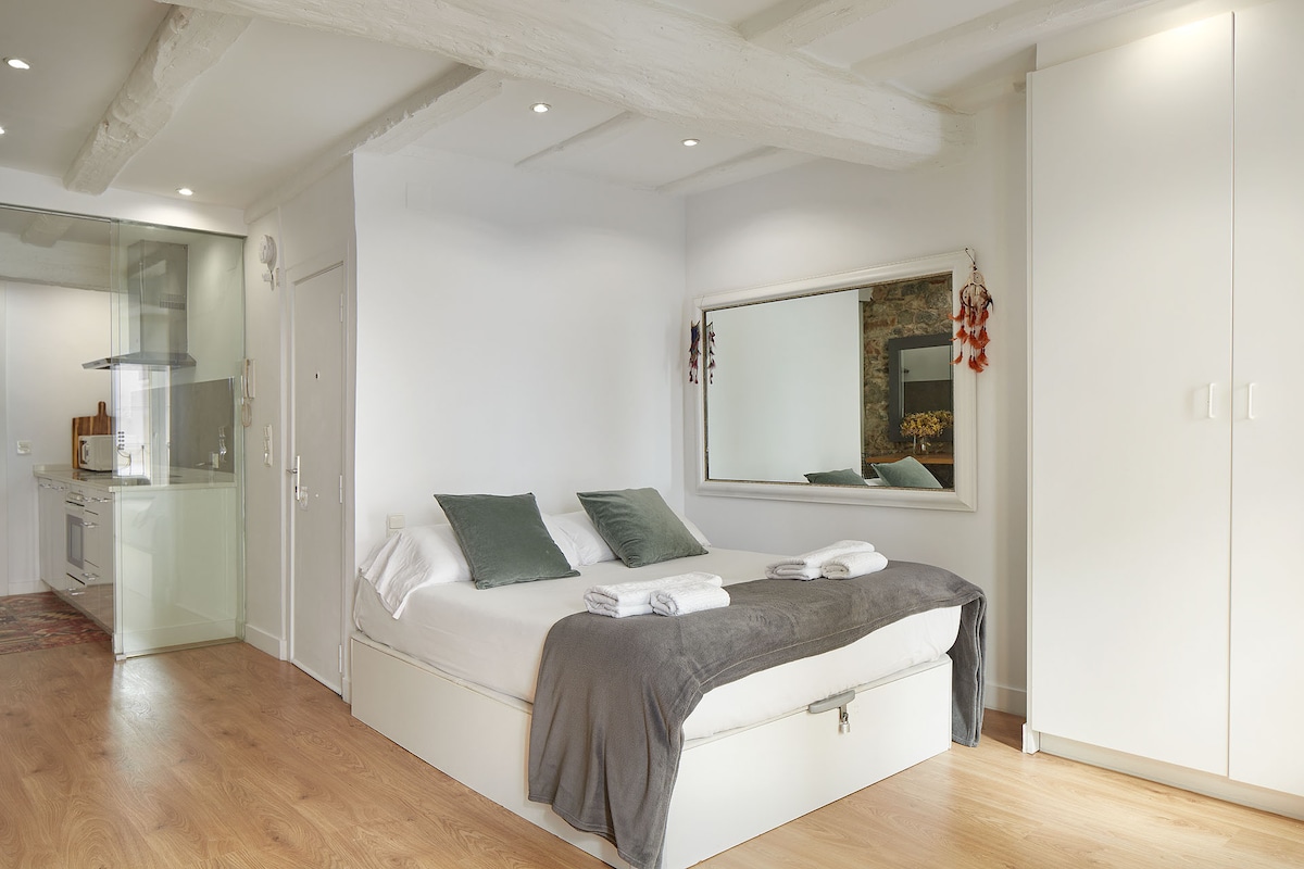 Gaya perkotaan dan nyaman, apartemen satu kamar tidur baru dengan tempat tidur kingsize dan tempat tidur sofa (144x180cm)ini terletak di pusat lingkungan Gros, 1 menit berjalan kaki ke pusat kota Fitur sempurna yang baru direnovasi dengan AC, TV 55", Wifi, Nesspreso. Berfasilitas lengkap untuk anak - anak dan bayi. Terletak sempurna 2 menit dari stasiun bus dan kereta api, serta di samping halte bus langsung ke bandara San Sebastian.
