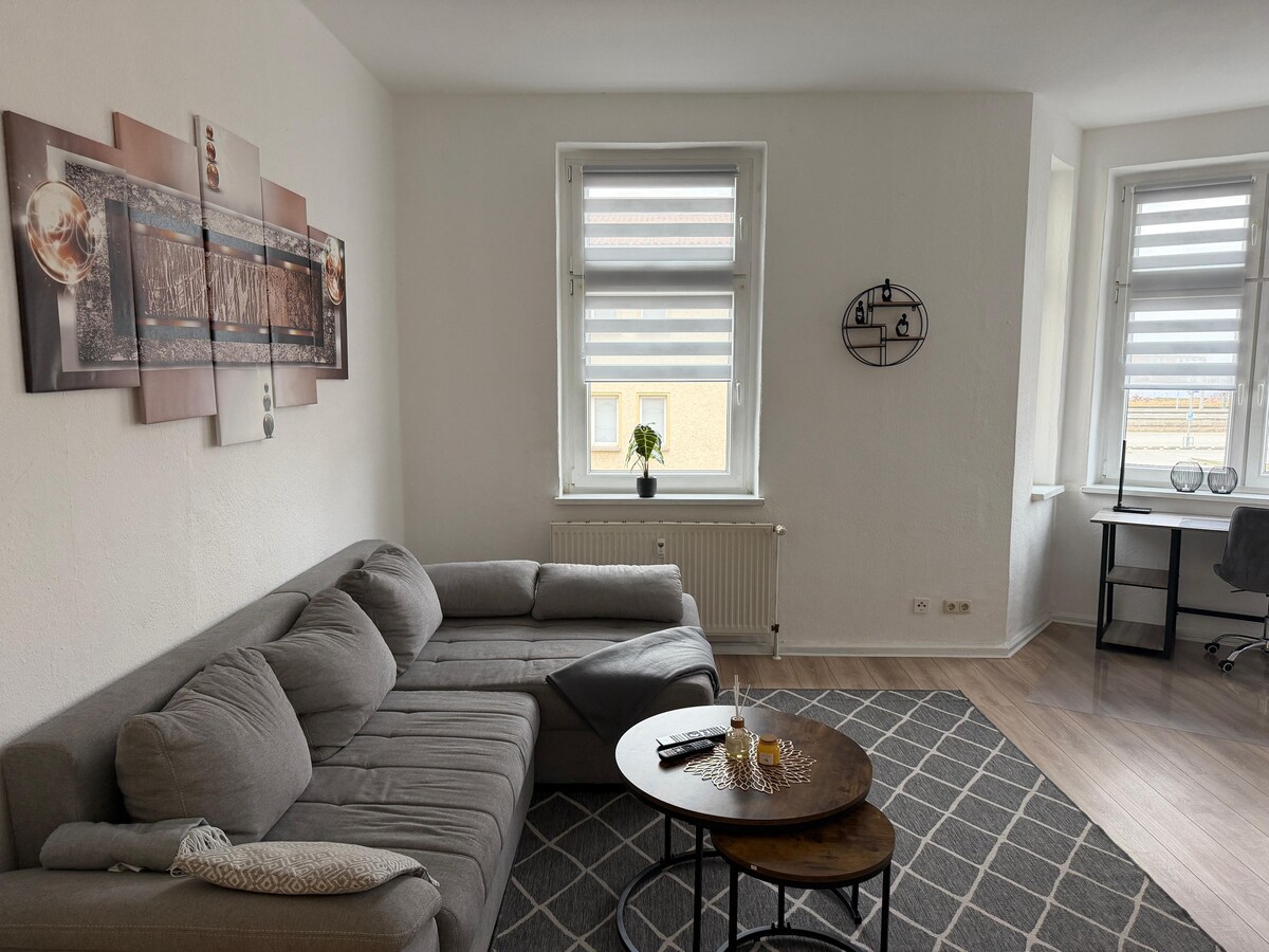 Welcome to the Halloren Suite in the heart of Halle (Saale) city center! This stylishly furnished suite combines historic charm with modern comfort and offers everything you need for a relaxing stay: → King-size bed for a restful sleep → Smart TV & comfortable seating areas → Free high-speed Wi-Fi → Private parking included → Fully equipped kitchen with coffee maker and dishwasher → Bathroom with bathtub and shower → Private washing machine - for longer stays :) → Private balcony for relaxing