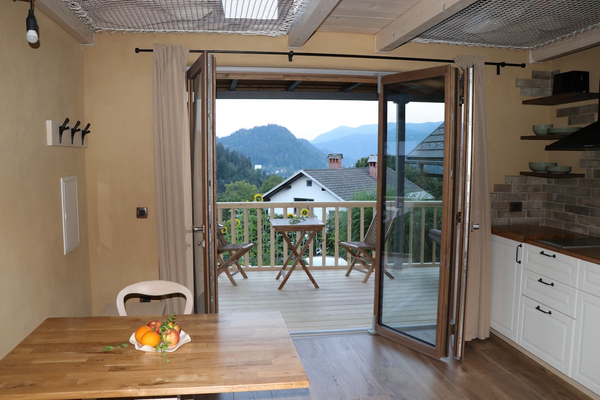 The cottage is located in a peaceful area, 10 min walk from the lake Bled (swimming area). It has been made with natural materials such as wood and clay which makes it a comfortable and a healthy stay. There are free scotters available for you to use. Parking is free in front of the house.