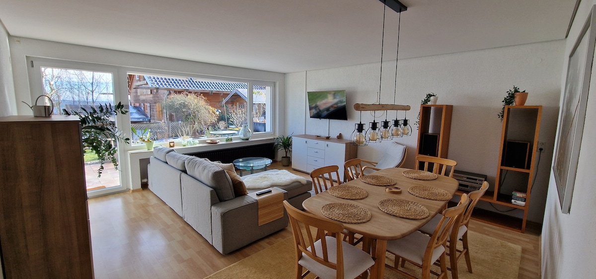 Rumah kayu desain modern dengan pemandangan kebun anggur yang fantastis dan pemandangan Remstal. Apartemen ini terletak di lantai dasar rumah terpisah dan memiliki pintu masuk apartemen terpisah dari luar. 15 menit naik mobil ke Stuttgart Mitte dan 20 menit naik S - Bahn. Apt. Fasilitas dilengkapi dengan perabotan berkualitas. Dapur terbuka, area makan Teras luar yang sangat besar mengundang Anda untuk berlama - lama. Semua fasilitas apartemen tersedia