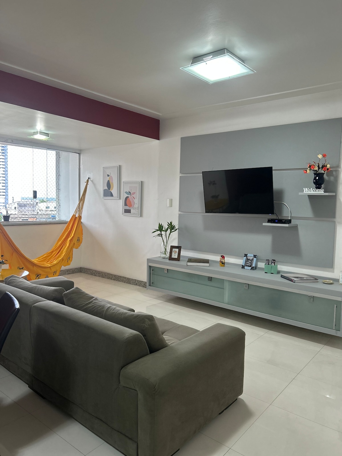 Apartamento moderno com 56 m2 de área privativa + garagem. Móveis e eletrodomésticos novos. Os 2 quartos possuem ar condicionado , sendo 1 com banheiro reversível. A sala tem sofá-cama, TV, ar condicionado, mesa com 4 cadeiras. Tem uma varanda privativa com vista para área nobre de Belém, cenário perfeito para o seu café da manhã . A cozinha é completa com fogão tipo cook top, forno de microondas e geladeira. Possui Wi-Fi e TV para entretenimentos sem limites