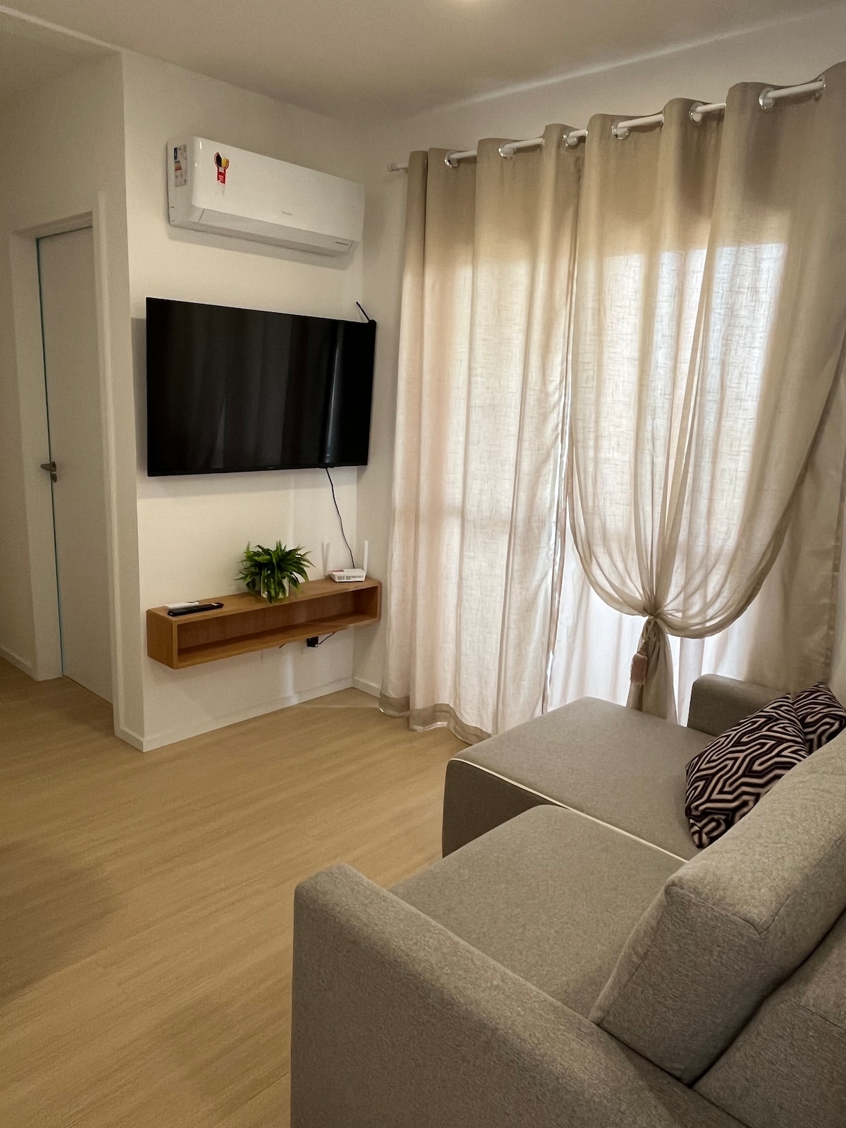 Relaxe com toda a família nesta acomodação tranquila,local seguro para todas as pessoas e pets de pequeno e médio porte com todo conforto necessário para desfrutar de uma natureza deslumbrante. Nosso ap é novo todo mobiliado com móveis planejados, Smart TV, Wi-Fi, Ar condicionado,sacada com churrasqueira,tudo para proporcionar conforto e praticidade necessária para sua estadia. Oferecemos como empréstimo raquetes e bola, cadeiras de praia, e caixa térmica pequena para sua diversão em família.