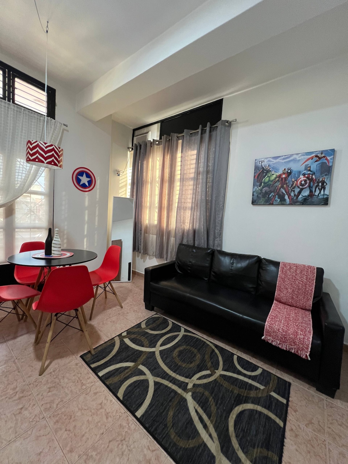 Benamkan diri Anda dalam kehangatan yang menyelimuti Apartamento Vino Rosso, ruang di mana kenyamanan dan gaya menyatu untuk menawarkan Anda pengalaman yang tak terlupakan di jantung San Juan de los Morros. Kapasitas dari 4 hingga 6 orang. 1 kamar dengan tempat tidur double dan kamar mandi pribadi, 1 kamar dengan 2 tempat tidur single. 1 kamar mandi tambahan. Dapur lengkap. Ruang makan yang luas. 1 tempat parkir. Mengangkat AC di semua ruangan. TV. WiFi gratis. 1 lampu dengan tanduk bluetooth.