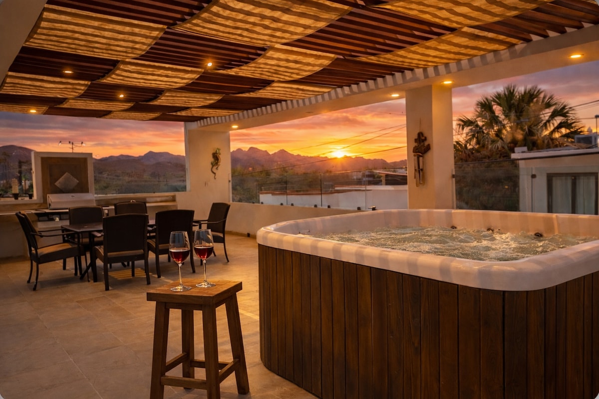 Spacious 2BR apartment in San Carlos, Sonora, just minutes walking to the beach, marina, restaurants and bars. Ideal for 4–6 guests, with 2 bedrooms, full bathroom, equipped kitchen and living area. Enjoy a beautiful terrace with jacuzzi, outdoor dining and sunset views. Private parking and independent entrance. A perfect blend of comfort, location and elevated coastal living.