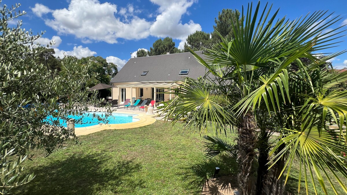 - Just 10 minutes from the racetrack and 5 minutes from the tram, enjoy this architect-designed house in a peaceful setting on the doorstep of Le Mans. - 3000m² garden, double garage and 2 private parking spaces. - Covered 5x10m swimming pool, petanque area. - 60m² terrace with bbq. The entire house is at your disposal, except for our bedroom and the study. You have access to all the traditional comforts: Wifi, TV, swimming pool, etc... A bathroom on the first floor with the 3 bedrooms.