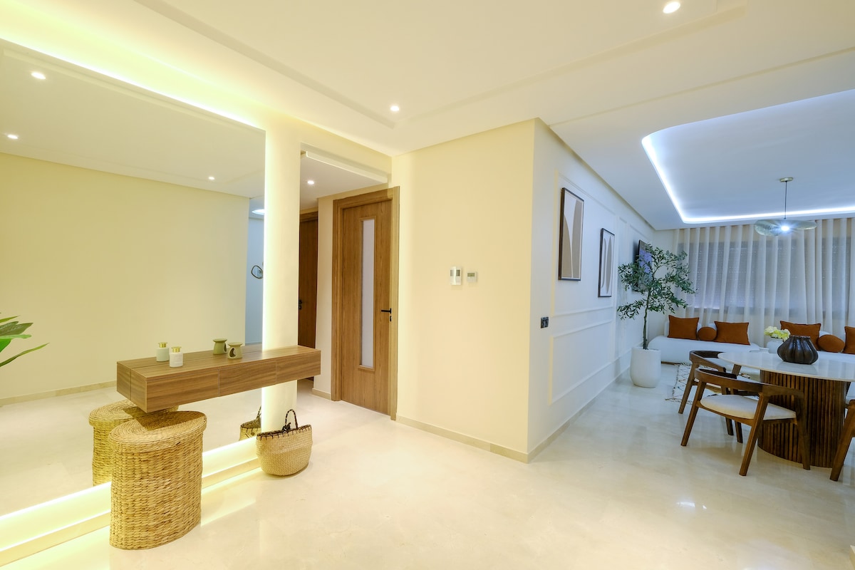 Apartemen kami berlokasi strategis di jantung kota Marrakesh. Stasiun kereta api, banyak kafe, restoran, toko kelontong, dan supermarket semuanya berada dalam jarak berjalan kaki. Bandara ini hanya berjarak 12 menit berkendara, sehingga ideal untuk wisatawan. • Properti ini menawarkan Wi - Fi berkecepatan tinggi, Netflix & IPTV, AC, kolam renang dalam ruangan, pusat kebugaran, parkir pribadi tertutup, dan keamanan & pengawasan 24/7.