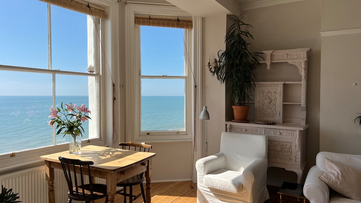 Flat cantik, luas, menghadap ke selatan dengan pemandangan laut yang menakjubkan, fitur asli, dan langit - langit yang tinggi. Matahari terbit/terbenam dan pantulan bulan sangat mempesona! Di antara St Leonards on Sea dan Hastings, dan 30 detik ke pantai! Kamar tidur memiliki tempat tidur berukuran king dan ruang tamu sofa double. Seprai adalah katun/seprai yang dicuci dengan produk yang tidak beracun. Flat berada di lantai 3 tetapi tidak banyak tangga dan dengan demikian, pemandangan laut jauh dari keramaian gila! Ada parkir gratis di dekatnya
