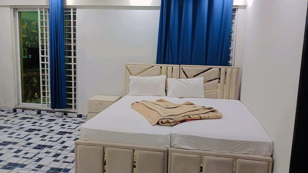 📍 Model Town, Lahore ✨ Opulent 3BR – Lantai 1 ✨ Cocok untuk: Keluarga | Teman | Bisnis | Wisatawan ⏱ ️ Check - in: 15.00 | Check - out: 12.00 (Check - in lebih awal atas permintaan) * Lantai 1 rumah pribadi yang aman * 3 kamar tidur ensuite * Ruang tunggu dan ruang makan mewah * Dapur berfasilitas lengkap + kompor listrik (pasca pemutusan beban gas) * 2 teras & halaman * Area kerja + mainan anak * Perlengkapan sarapan 1 hari * Cadangan daya & penjaga 24/7 * Parkir gratis di lokasi * Penjemputan bandara tersedia (biaya berlaku)