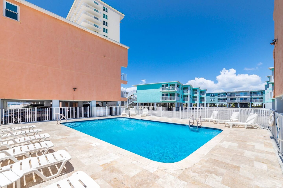 Bangun dengan ombak Teluk di kondominium tepi pantai 2 kamar tidur, 2 kamar mandi ini yang bisa menampung 8 orang. Suite king gulf-view, kamar tamu dengan tempat tidur queen-over-queen, ditambah sofa queen sleeper. Nikmati kopi matahari terbit & koktail matahari terbenam di balkon Anda di atas pasir putih. Beberapa langkah dari pantai melalui trotoar pribadi, dengan kolam renang tepi pantai, pemanggang BBQ, parkir gratis, Wi-Fi, TV pintar. Berjalan kaki ke The Hangout, Bahama Bob's; lapangan pickleball, dermaga memancing & jalur Gulf State Park di dekatnya. Tuan rumah lokal berbagi tips lokal di pantai.