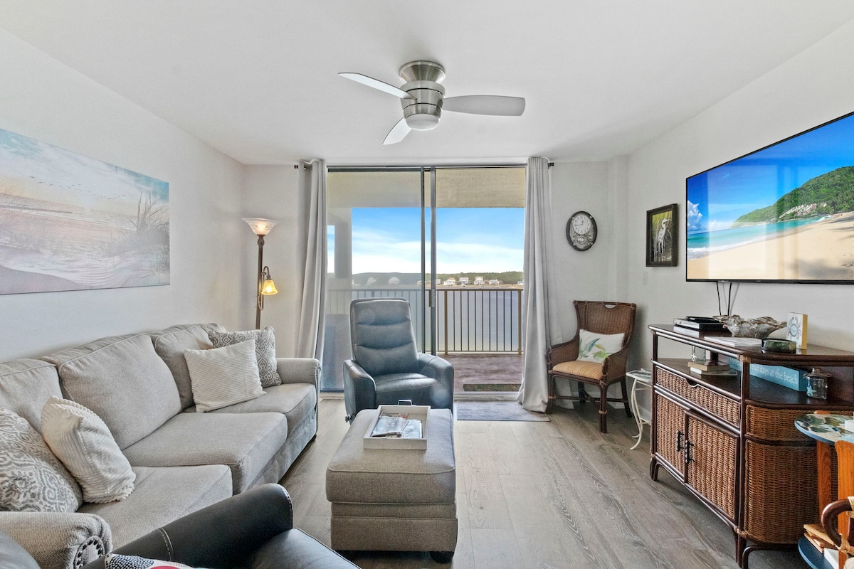 Pondok tepi laut yang indah! Pemandangan air yang menakjubkan di setiap jendela! 3 menit berjalan kaki cepat ke akses pantai pribadi; 2 balkon dengan kursi Adirondack yang selalu ada di tempat teduh; istirahat yang menyenangkan dari sinar matahari! Kolam renang berjarak beberapa langkah dengan platform 2 kaki untuk anak - anak dengan kursi berjemur; dermaga besar cocok untuk memancing dan ayunan untuk menikmati matahari terbenam dengan koktail! Laguna lokasi peluncuran yang mudah untuk kayak/papan dayung Pondok tersendiri Restoran hebat musik live di sepanjang jalan 2 ruang mobil tertutup Sangat Bersih!