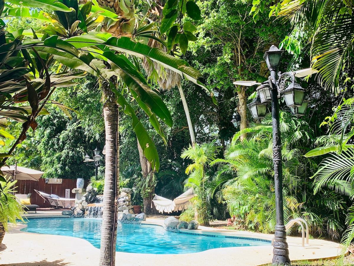 Ruang unik yang santai dengan langit besar dan tempat tidur yang nyaman. Mencari tempat persembunyian akrab di mana Anda tidak bisa melakukan apa pun selain bersantai, menyeimbangkan kembali, dan mengisi ulang diri Anda. Hanya 30 menit dari bandara SJU. Tempat unik ini dirancang untuk menjadi seperti rumah sendiri, jadi Anda akan menemukan semua fasilitas yang Anda butuhkan untuk merasa nyaman dan bersantai. Catatan - AC ditambahkan Februari 2025. Kami memiliki generator daya penuh dan tangki air. Suhu maksimum bak mandi air panas adalah 85 derajat, jika listrik mati akan membutuhkan waktu untuk menghangat kembali.