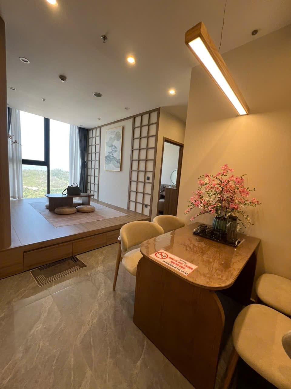 - Sorotan utama adalah kamar dengan pemandangan laut tempat Anda dapat menikmati kopi pagi, menyaksikan matahari terbit yang cerah atau bersantai dengan matahari terbenam yang romantis di atas laut. - Apartemen ini terdiri dari 1 kamar tidur, ruang tamu yang menghubungkan dapur dan cocok untuk pasangan atau keluarga kecil. Perabot yang nyaman: AC, wifi berkecepatan tinggi, smart TV, kompor,... menghadirkan nuansa nyaman seperti di rumah namun tetap melengkapi pengalaman resor. - Lokasinya tepat di samping pantai – hanya beberapa menit berjalan kaki, Anda sudah bisa menikmati air biru jernih.