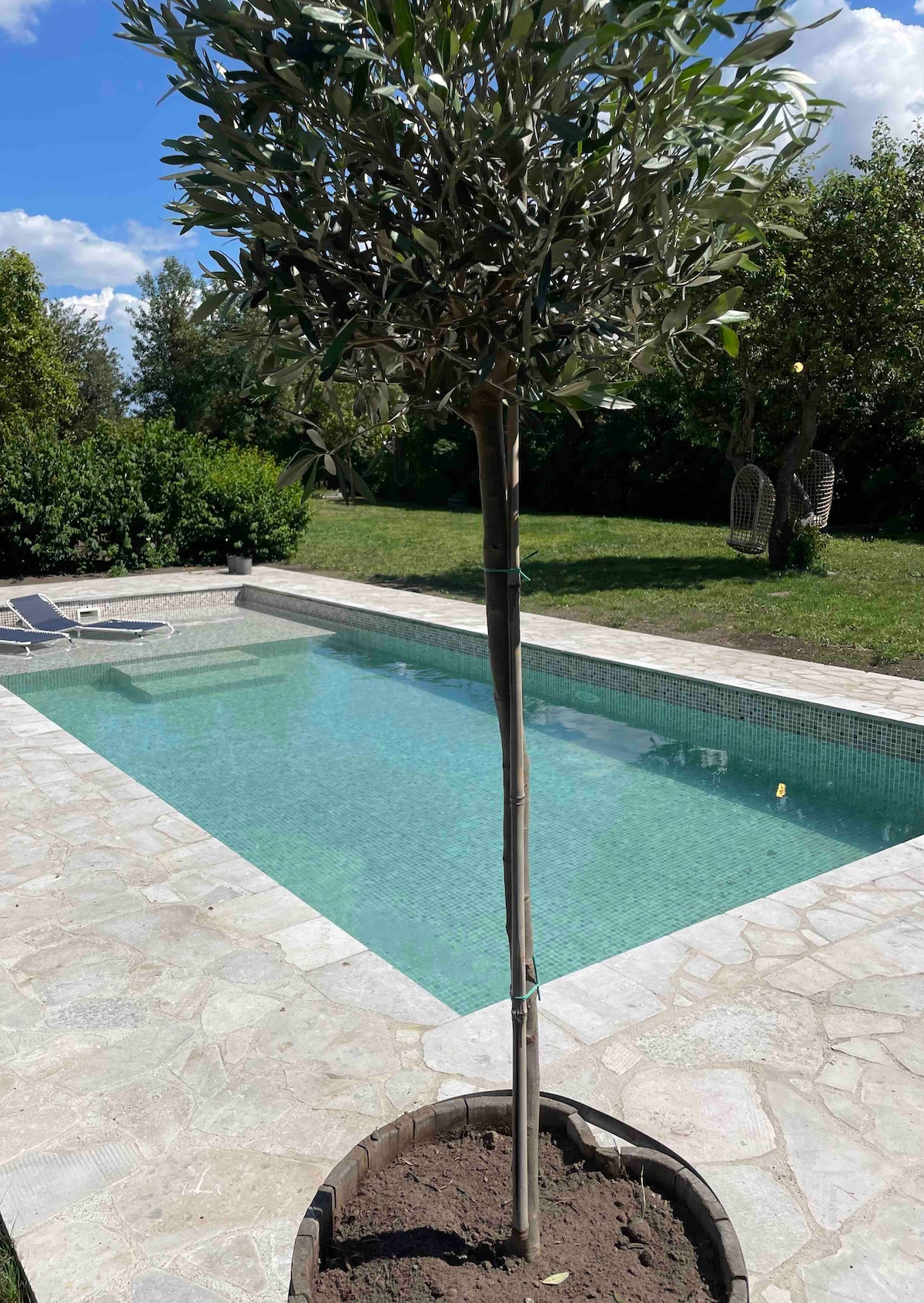 Vila dekat laut dengan kolam renang di lingkungan pedesaan