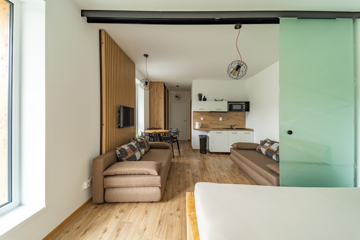 Sewa tempat berperabot lengkap termasuk dapur dan segala fasilitas yang Anda butuhkan untuk tinggal dengan nyaman selama satu bulan atau lebih. Alternatif yang pas untuk akomodasi yang disewakan ulang.