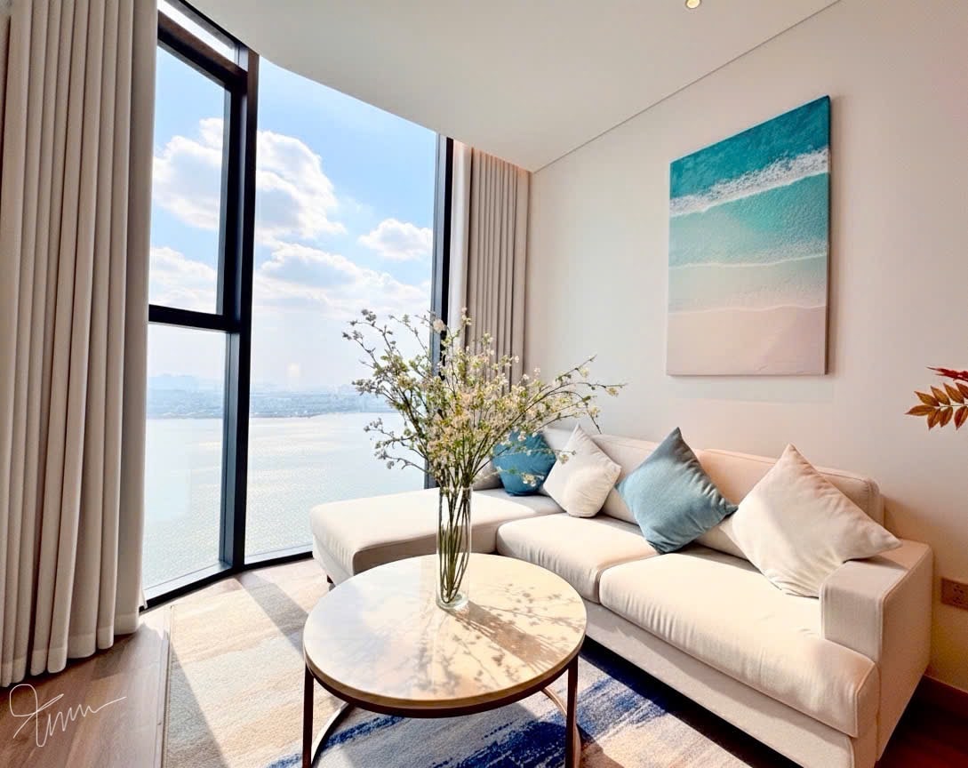 ✨ Bangunlah dengan laut biru yang berkilauan, melirik danau yang tenang dan pegunungan yang megah, dan nikmati lampu kota yang semarak pada malam hari – semuanya dari satu studio sudut yang menakjubkan! 🏠 Sorotan: • Apartemen sudut seluas 48m² yang luas dengan pemandangan panorama. • 4 pemandangan menakjubkan dalam 1: Cakrawala kota – Danau tenang – Pegunungan – Cakrawala laut. • Tempat tidur king-size (1,8m x 2m) + sofa yang nyaman. • Mesin cuci dan pengering untuk masa inap jangka panjang + pengering rambut disertakan. • Interior modern, terang, dan nyaman dengan jendela besar.