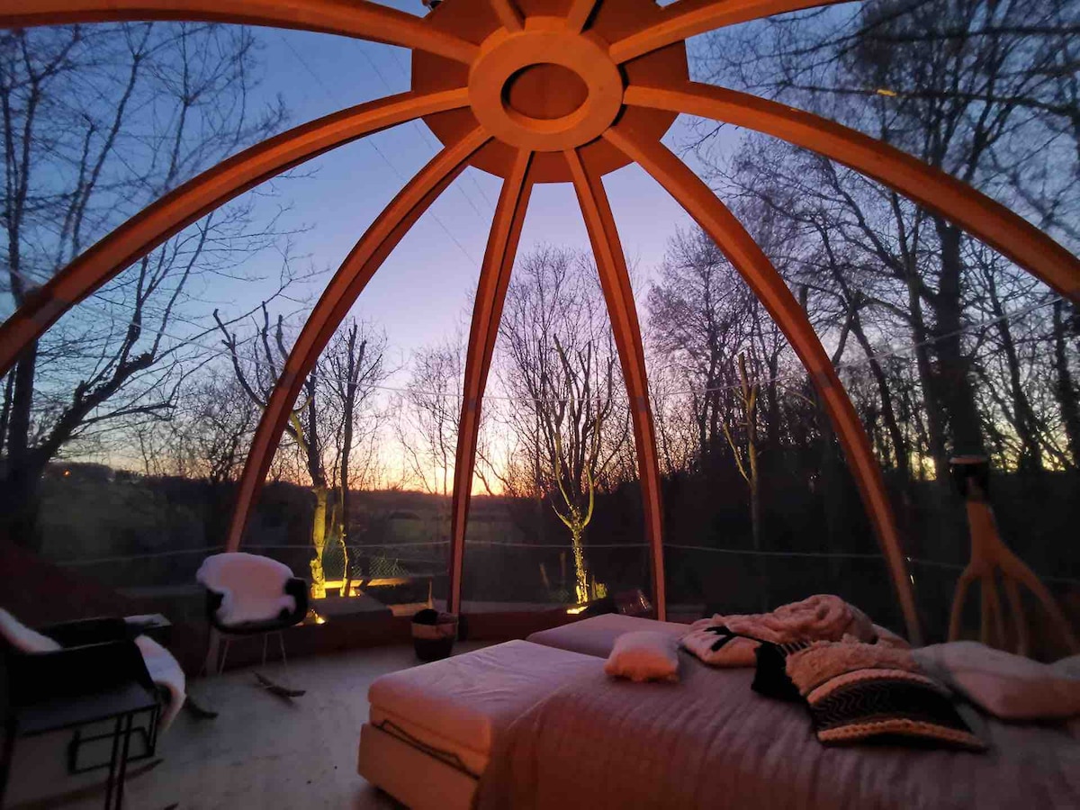 Kubah dengan jacuzzi dan sauna pribadi 2 hingga 4 orang.