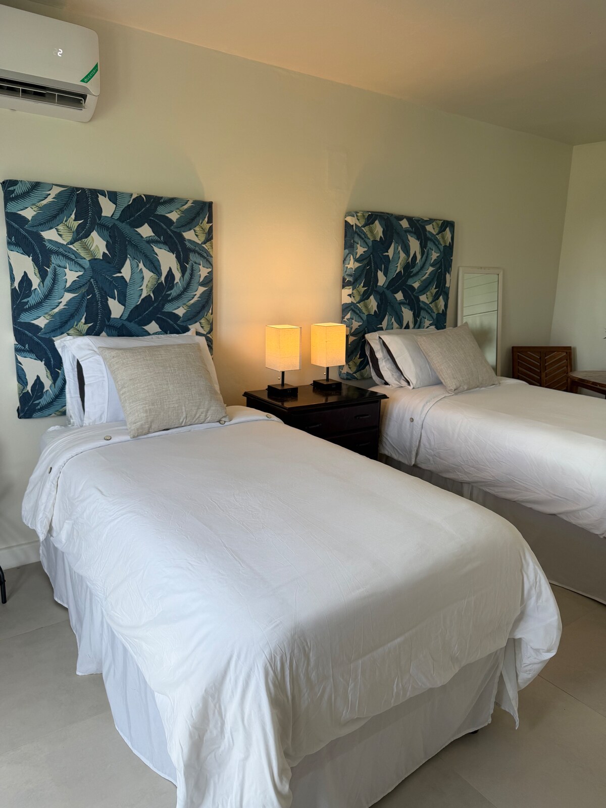 Beautiful oceanfront corner studio apartment in gated beachfront community. On the corner and directly in front of the sea with amazing views of the Caribbean Sea and Booby Cay Island. Point Village “The Point” is one of a kind, with extensive grounds, 2 private beaches (1 adult beach and 1 family beach) plus a large swimming pool, sun warmed rock pools, and a long stretch of coast providing plenty of un-crowded space. And still you can walk right on to 7-mile beach.