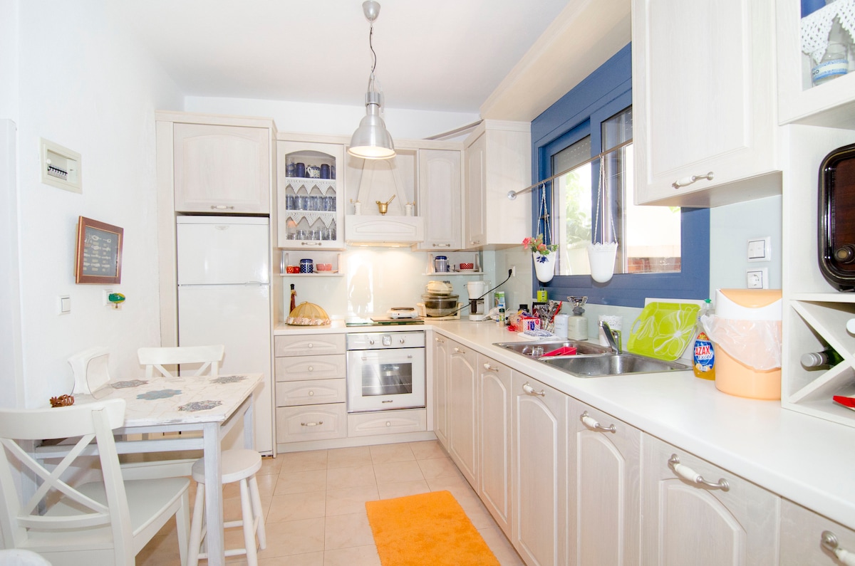 Kami menyambut Anda di apartemen 1 kamar tidur (40 meter persegi) kami yang baru direnovasi yang terletak hanya 5 menit berjalan kaki dari pantai Nikiti. KAMI MENAWARKAN WIFI GRATIS SUPER CEPAT HINGGA 220MBPS Ini adalah salah satu dari 3 apartemen individu di lantai dua gedung kami. Jadi mengapa tidak mengatur liburan bersama teman dan keluarga Anda di dua apartemen lainnya, mendapat manfaat dari memiliki seluruh tempat untuk Anda sendiri. MENURUT UNDANG-UNDANG YUNANI, ANDA PERLU MEMBERITAHUKAN NOMOR PASPOR ANDA KEPADA KAMI SAAT MELAKUKAN PEMESANAN