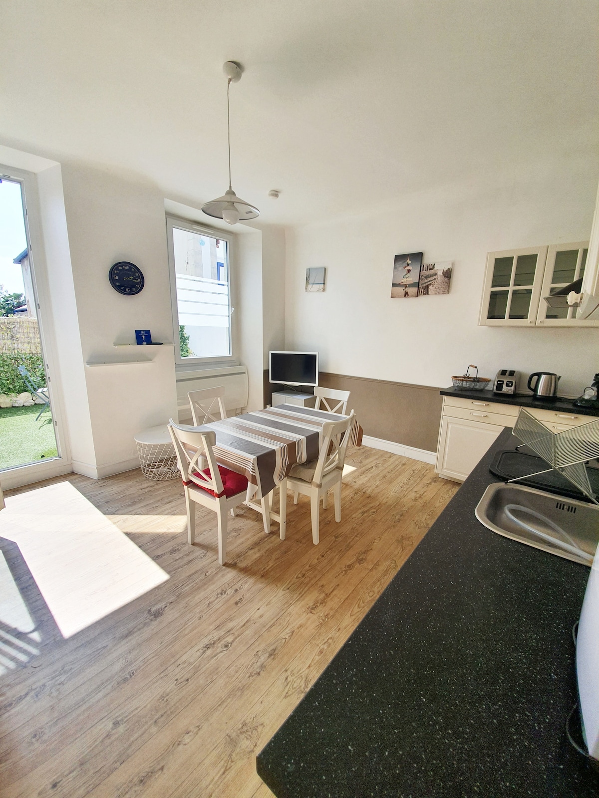 Apartemen satu lantai yang sepenuhnya independen seluas sekitar 33 m², berdekatan dengan vila utama. Akomodasi baru, berfasilitas lengkap dan berperabot lengkap. 1 kamar tidur dengan 1 tempat tidur berukuran 140 cm, TV. 1 sofa bed, 140 cm, di ruang tamu, 1 kamar mandi dengan shower, 1 toilet terpisah. 1 teras tertutup seluas sekitar 8 m² dengan perabotan taman, barbekyu. Koneksi internet. Semua seprai tersedia. Tidak cocok untuk orang dengan keterbatasan mobilitas.