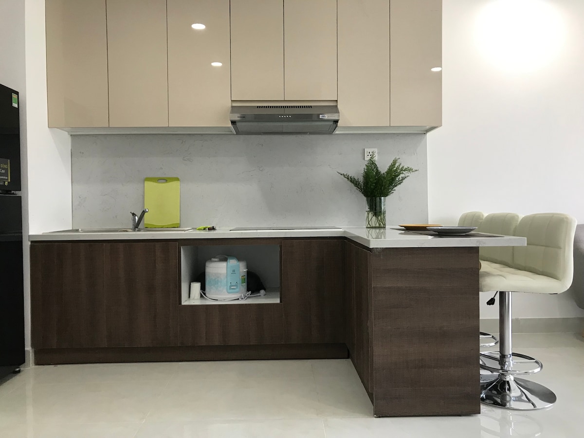 Located in the center of Da Nang city, bordering on Han River, Indochina Riverside Towers apartment area is 200m from Han market;1,5 km from the airport, below the apartment is a commercial center with many famous brands,Pizza 4Ps, Highlands,Ut tich coffee ... 2 bedroom apartment with 110m2 is fully furnished, on 16th foor, comfortable and luxurious. From the bedroom, visitors can watch the Han River, the rotating Han River Bridge and see the panorama of the international fireworks competition.
