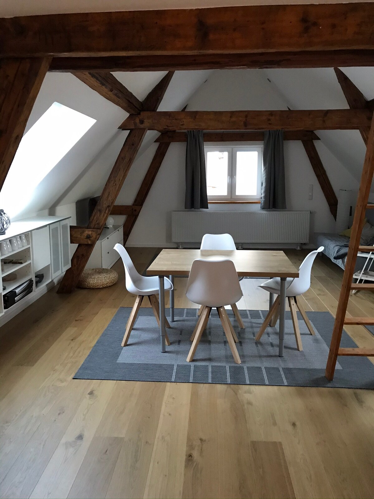 Di lampiran rumah kami, yang sebelumnya digunakan sebagai praktik, studio ini tersedia untuk penggunaan pribadi eksklusif Anda. Di samping lorong kecil dengan lemari sepatu dan lemari pakaian terdapat kamar mandi kecil dengan toilet dan shower. Di ruang tamu yang besar dan terang terdapat dapur kecil (tapi tidak ada dapur lengkap) dengan wastafel. Sofa lipat bisa menampung orang ketiga. Di belakang dinding partisi dengan tinggi sedang terdapat tempat tidur ganda tepat di dekat jendela besar.