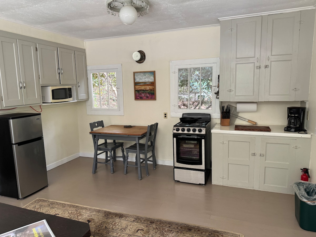 Welcome to picturesque spacious luxury: this fully renovated cabin, tucked away on an expansive 200+ acre property w/ private trails. The spectacular 1 bedroom features: vaulted ceilings, brand new kitchen/appliances, granite counter island w/seating, dining room, powder room & bathroom with walk in shower & soaking bathtub, King bed, blackout curtains, large windows w/ nature views, Smart TV, BBQ, hot tub option(available in May) & direct access to the serene forest & walking paths.
