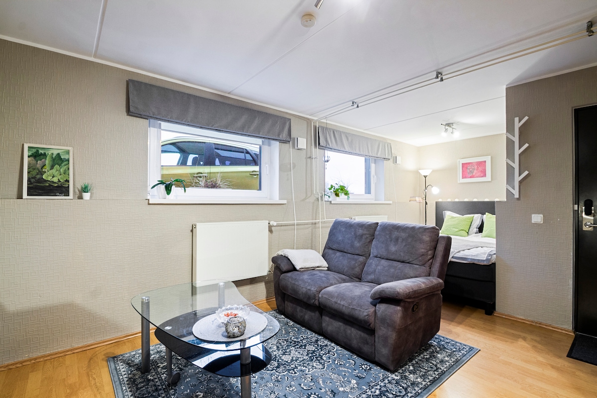 Hubane ja valgusküllane ühetoaline korter Murastes, kust leiad kõik eluks vajaliku. Korteris on kööginurk ja elutuba, 150cm lai voodi, mugav diivan ja telekas, pesumasinaga dušširuum ning töölaud arvutiga töötamiseks. Ideaalne peatuspaik üksikreisijale või kahele, kes hindavad rahulikku ümbrust ja kiiret ühendust Tallinna ning mereäärsete puhkealadega. Lähedal asuvad toidupood, söögikoht ja bussipeatus. Mereni Muraste randa on jala umbes 30min. Linnapiirini on umbes 11km, Haabersti ringini 14km.