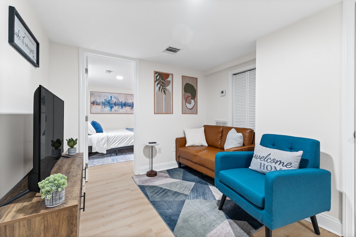 A newly renovated, Bohemian-inspired 2-bedroom apartment just across the Hudson River from Manhattan in Fort Lee, NJ. This central location places you near top-notch restaurants, shops, museums, and parks. The apartment offers clean, modern accommodations designed to exceed guest expectations. It's nestled in a safe, walkable, and serene neighborhood, making it perfect for strolls. And when you're ready to explore the city, it's just a 5-minute drive over the George Washington Bridge to NYC.